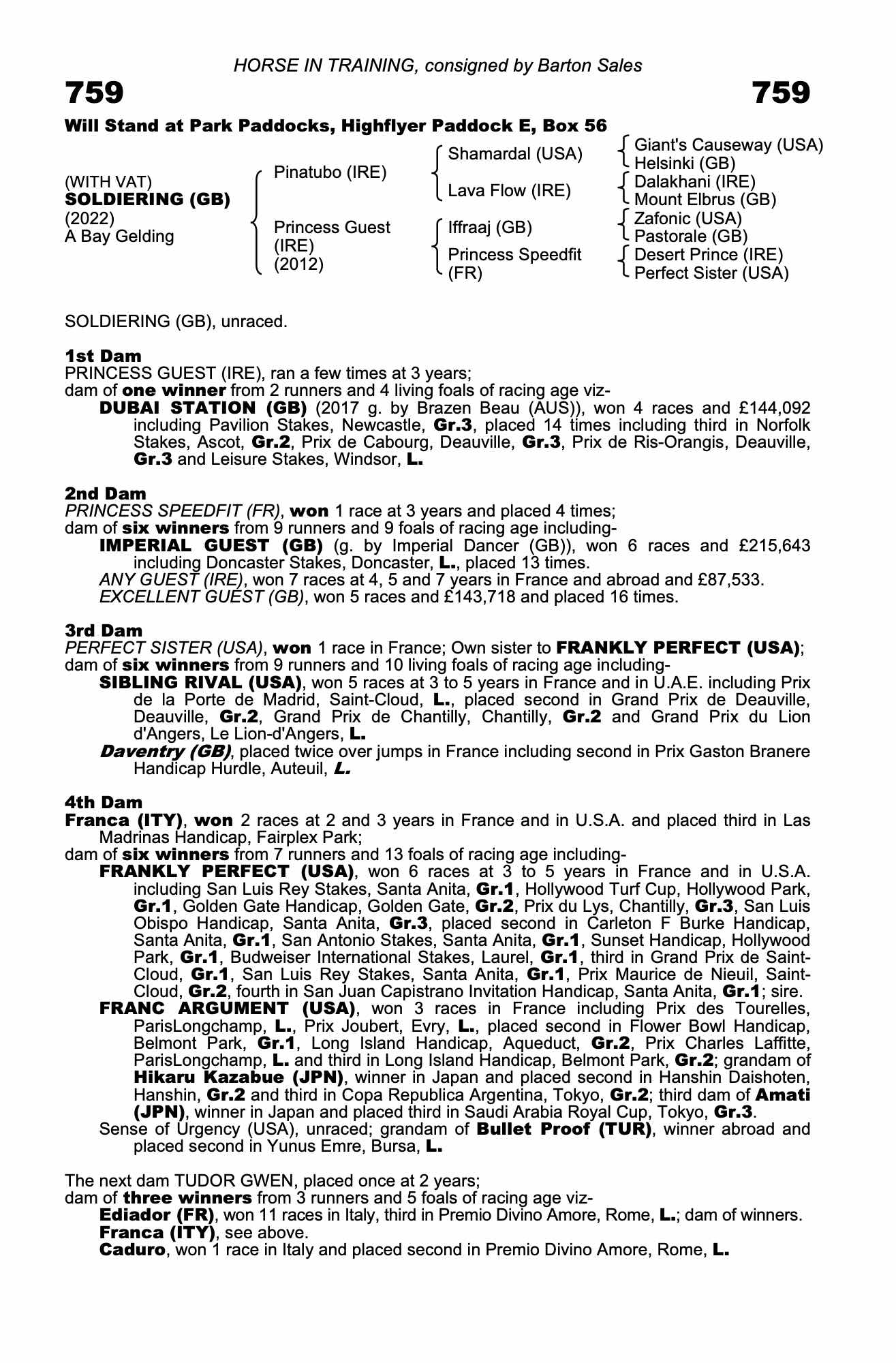 August Sale 2023 lot 251 Dubai Station (GB) (G. by Brazen Beau (AUS)), Jamie Railton (Agent)=>Roger J Moore (World Cargo Solutions) 25,000 gns
