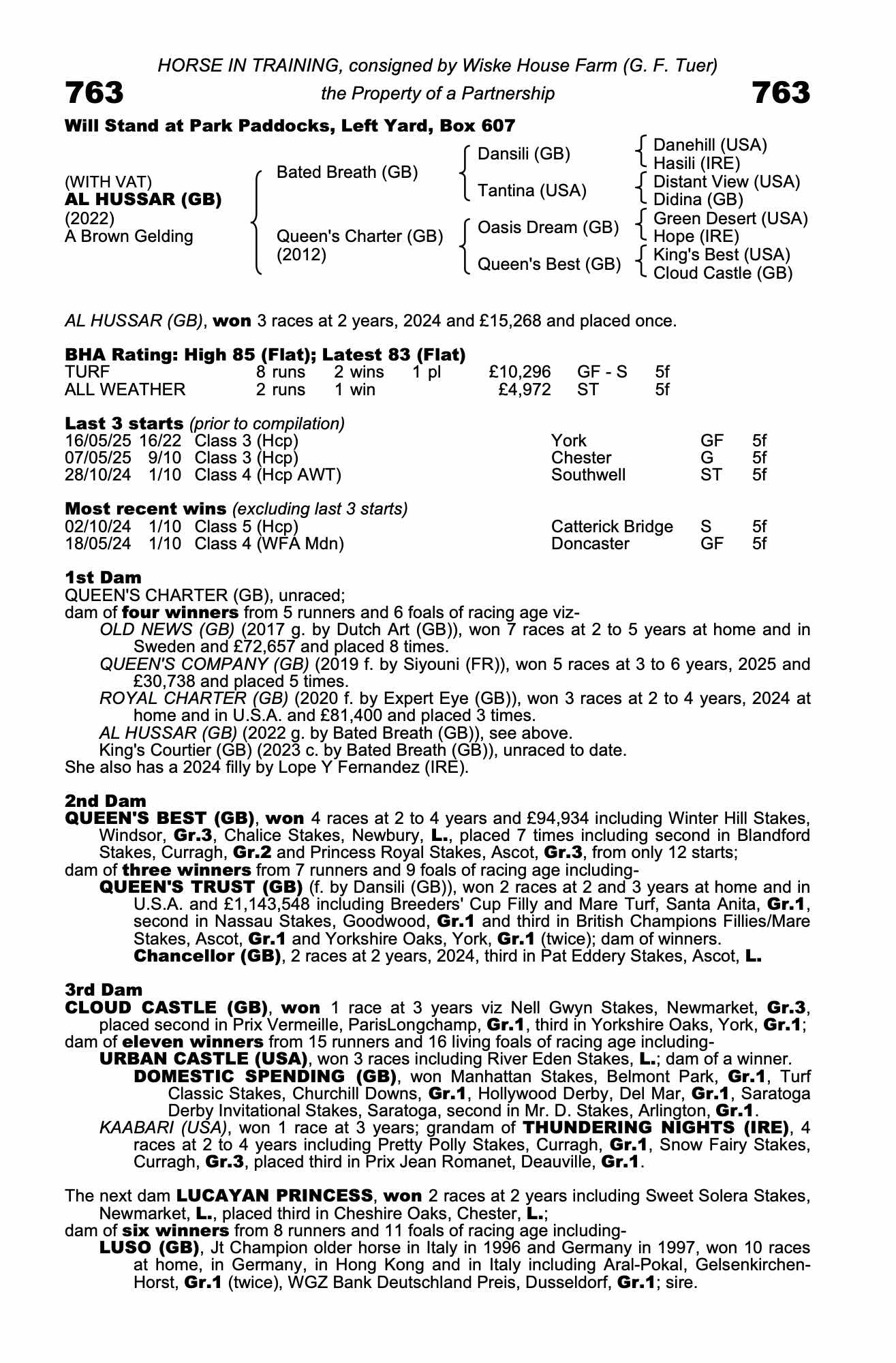 Online Sale - 19th November 2025 lot 163 Queen's Company (GB) (M. by Siyouni (FR)), Harraton Stud (J. & S. Birkett)=>North Bradon Stud 1,000 gns