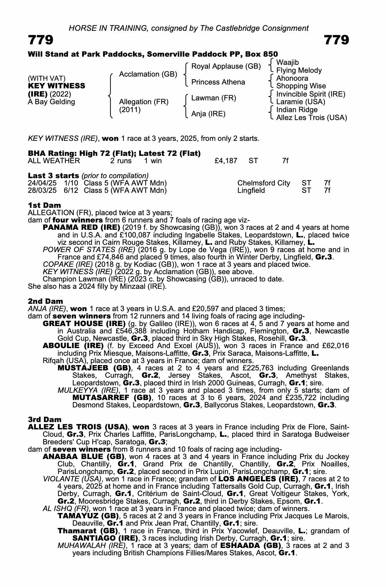 July Sale 2025 lot 105 Forty Pockets (IRE) (M. by Profitable (IRE)), Lotus Bloodstock=>Vendor 19,000 gns