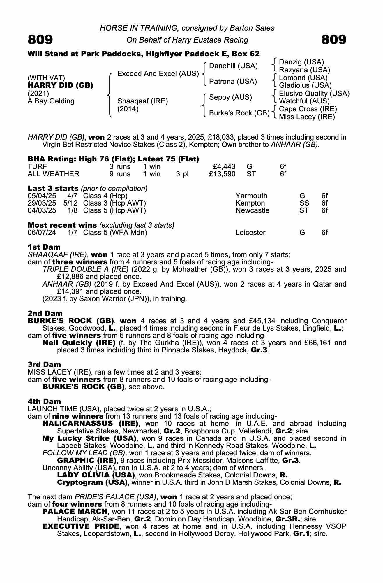Online Sale - 13th August 2025 lot 41, Park Lodge Stables (H. Eustace)=>Sultan Alajmi 2,000 gns