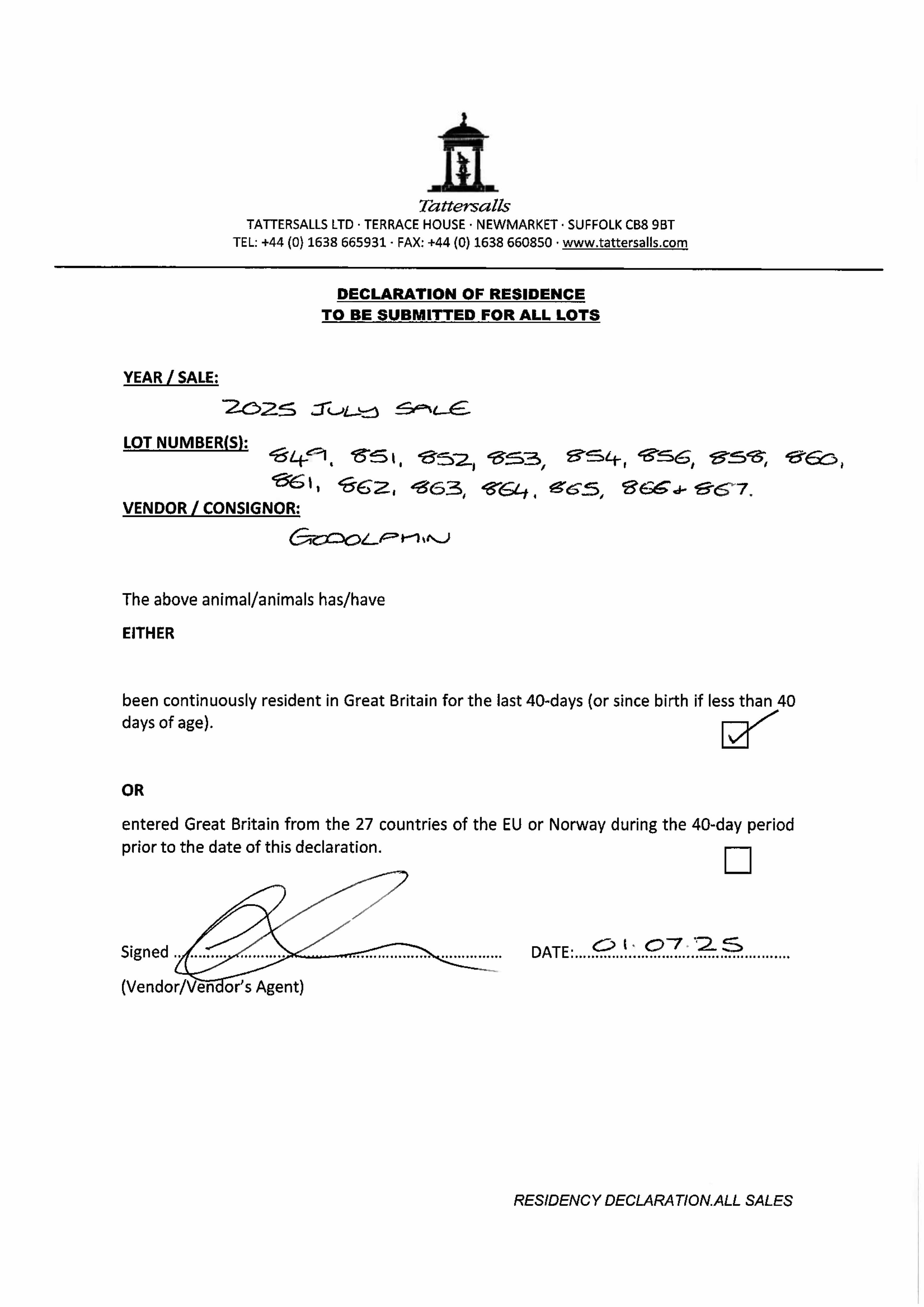 Residency Declaration