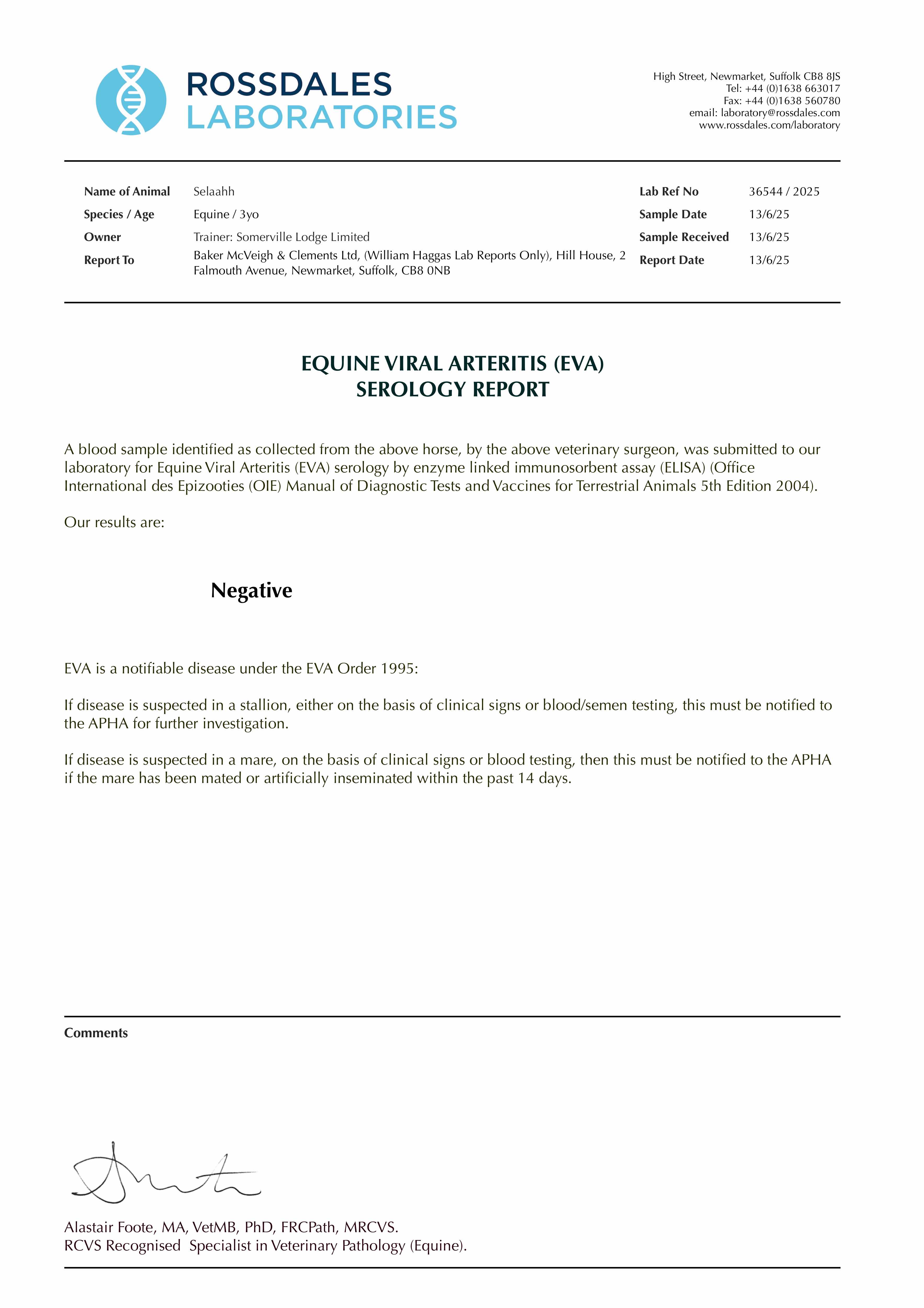 Consignor: Somerville Lodge Ltd. (W. Haggas), Agent