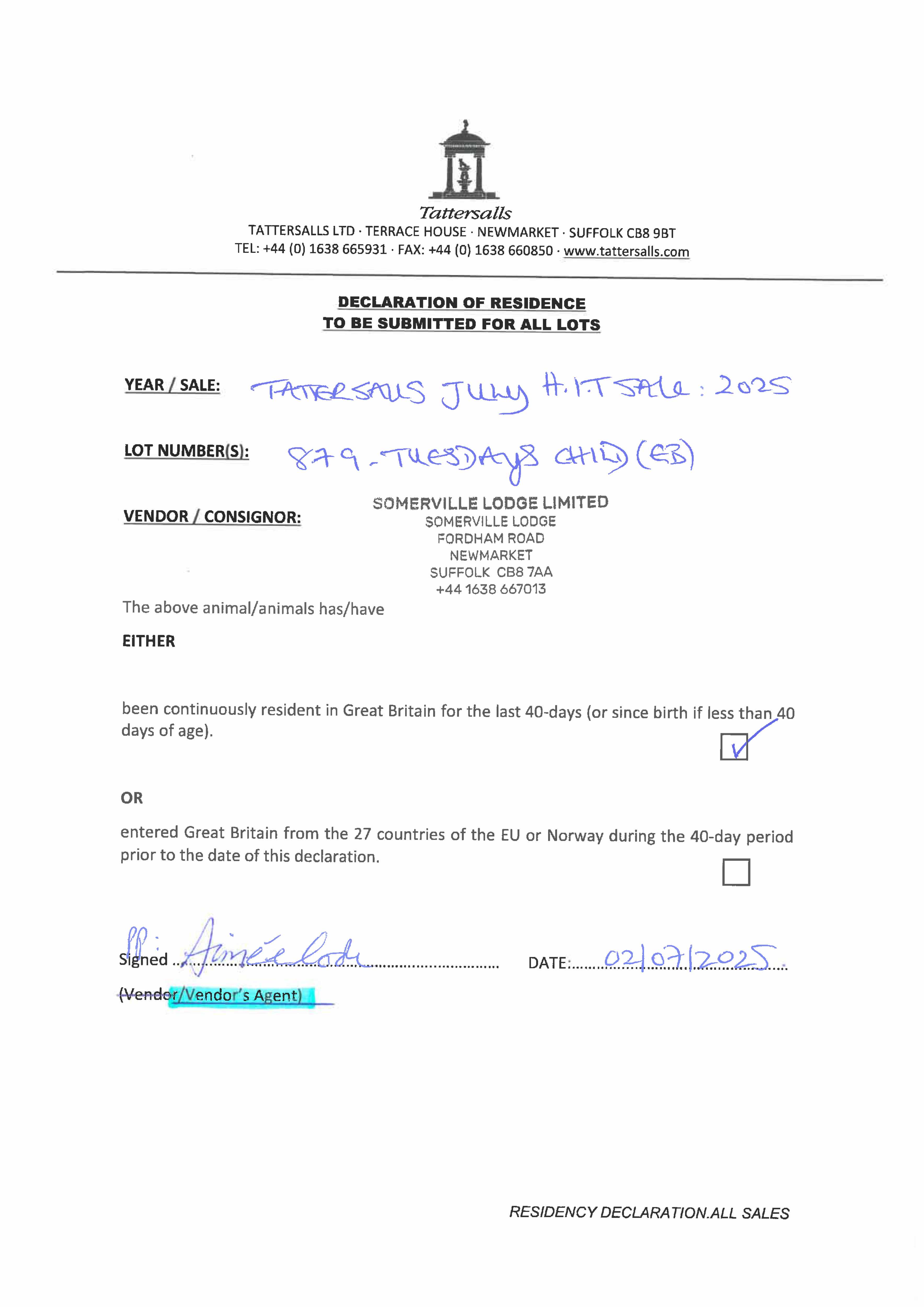 Consignor: Somerville Lodge Ltd. (W. Haggas), Agent