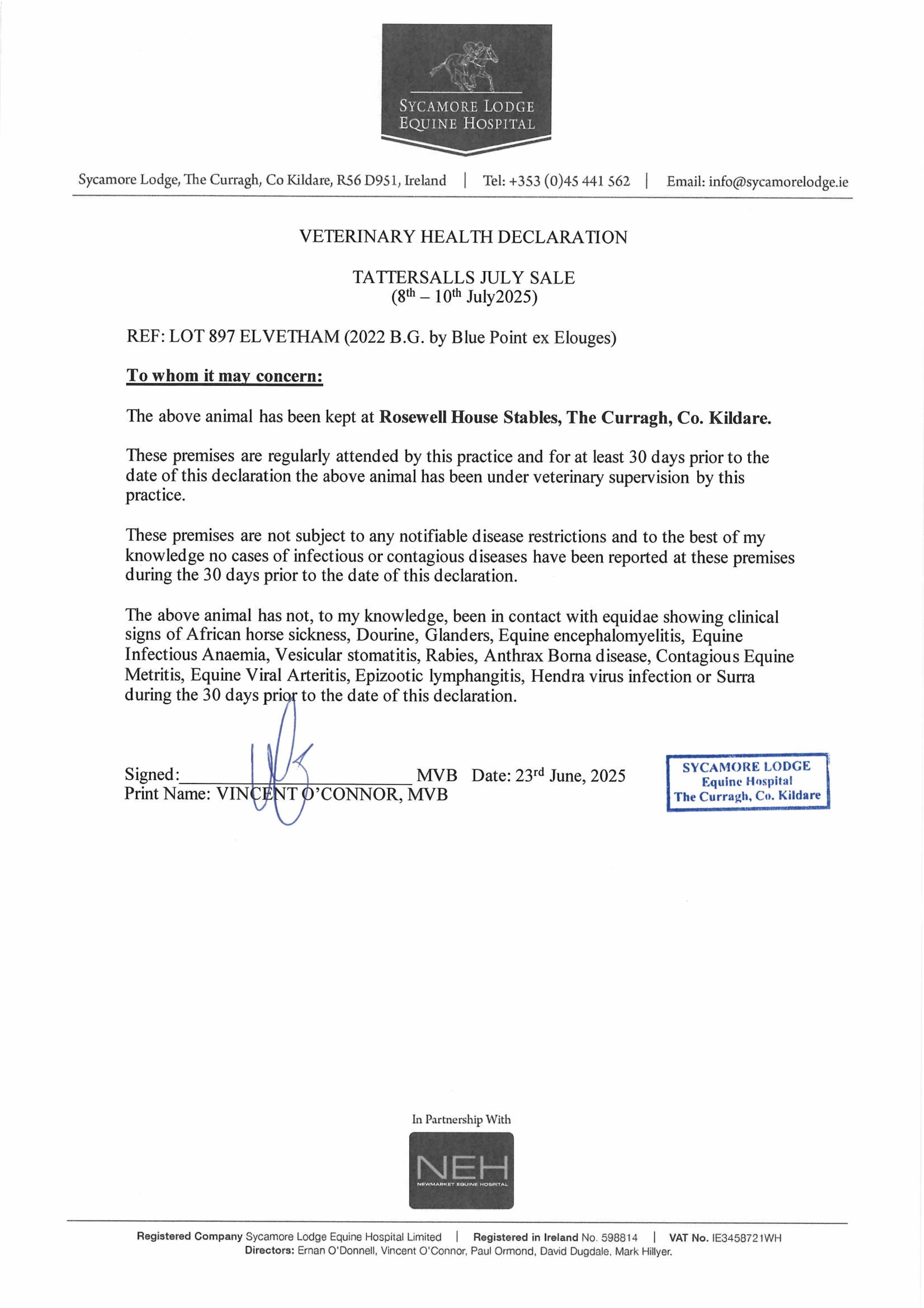 Consignor: Rosewell House Stables, Ireland (D. K. Weld)