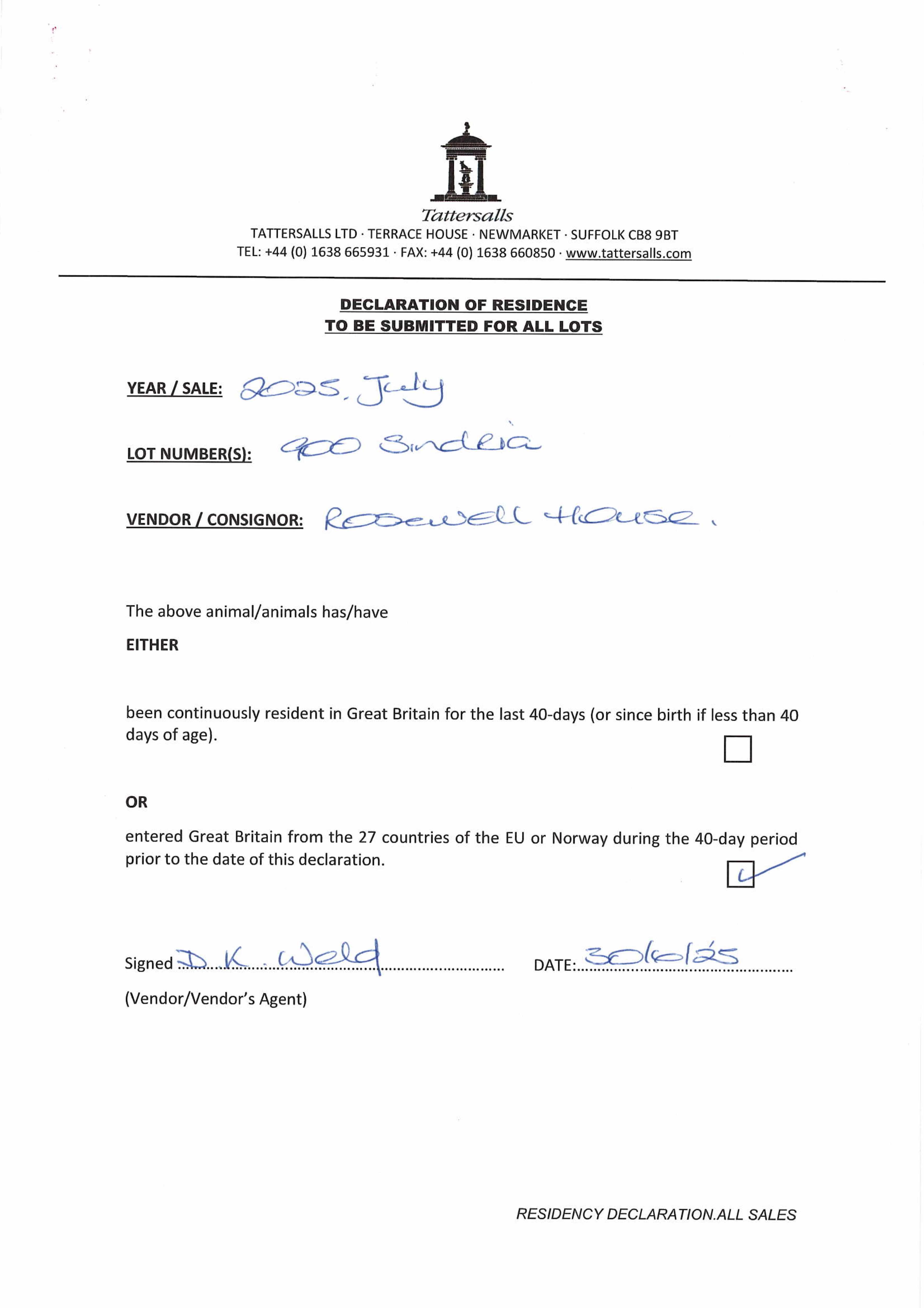 Consignor: Rosewell House Stables, Ireland (D. K. Weld)