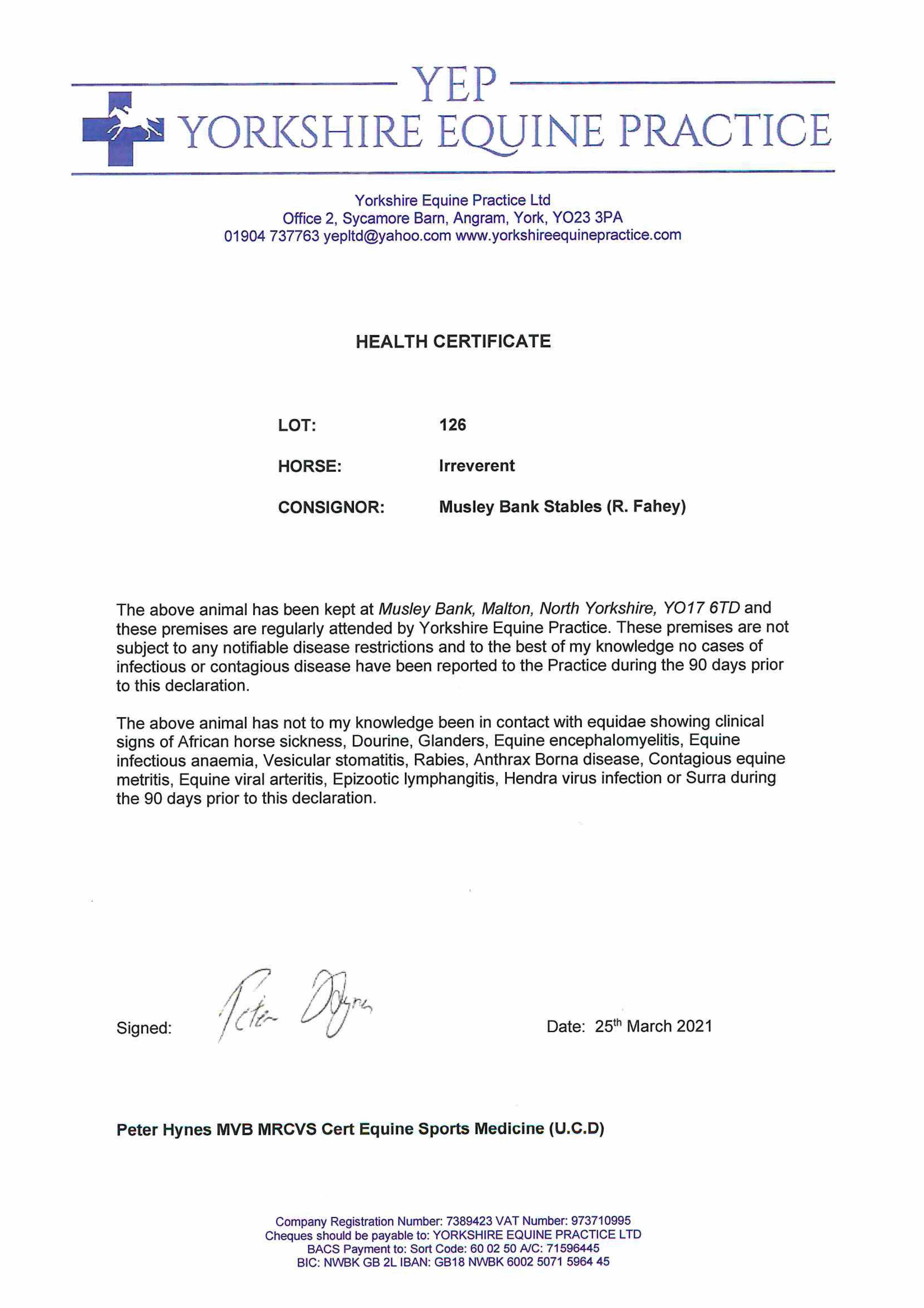 Consignor: Musley Bank Stables (R. Fahey)