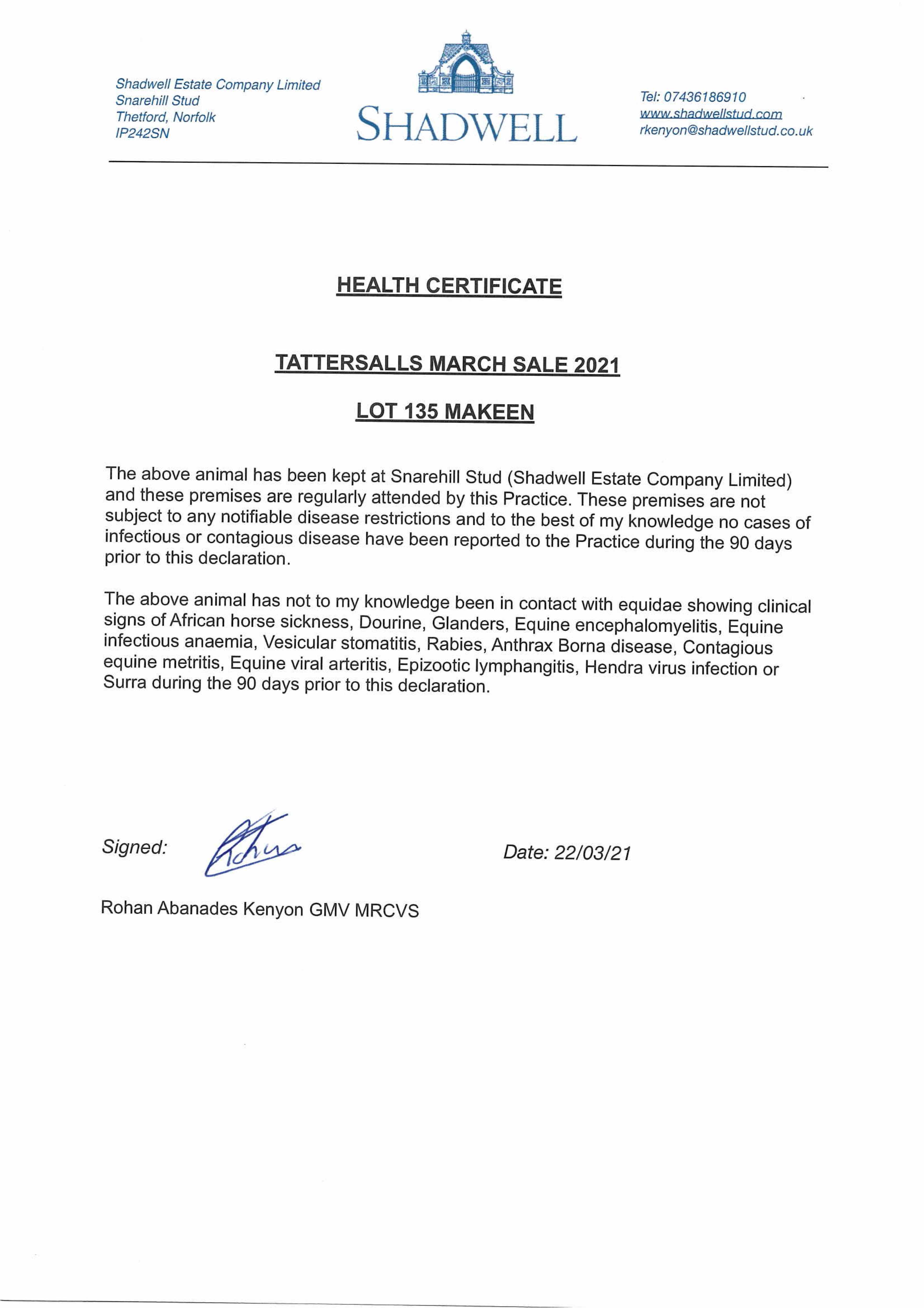 December Mare Sale 2021 lot 2330 Mosabaqa (IRE) (F. by Muhaarar (GB)), Shadwell Estate Company Ltd.=>Lot Not Sold