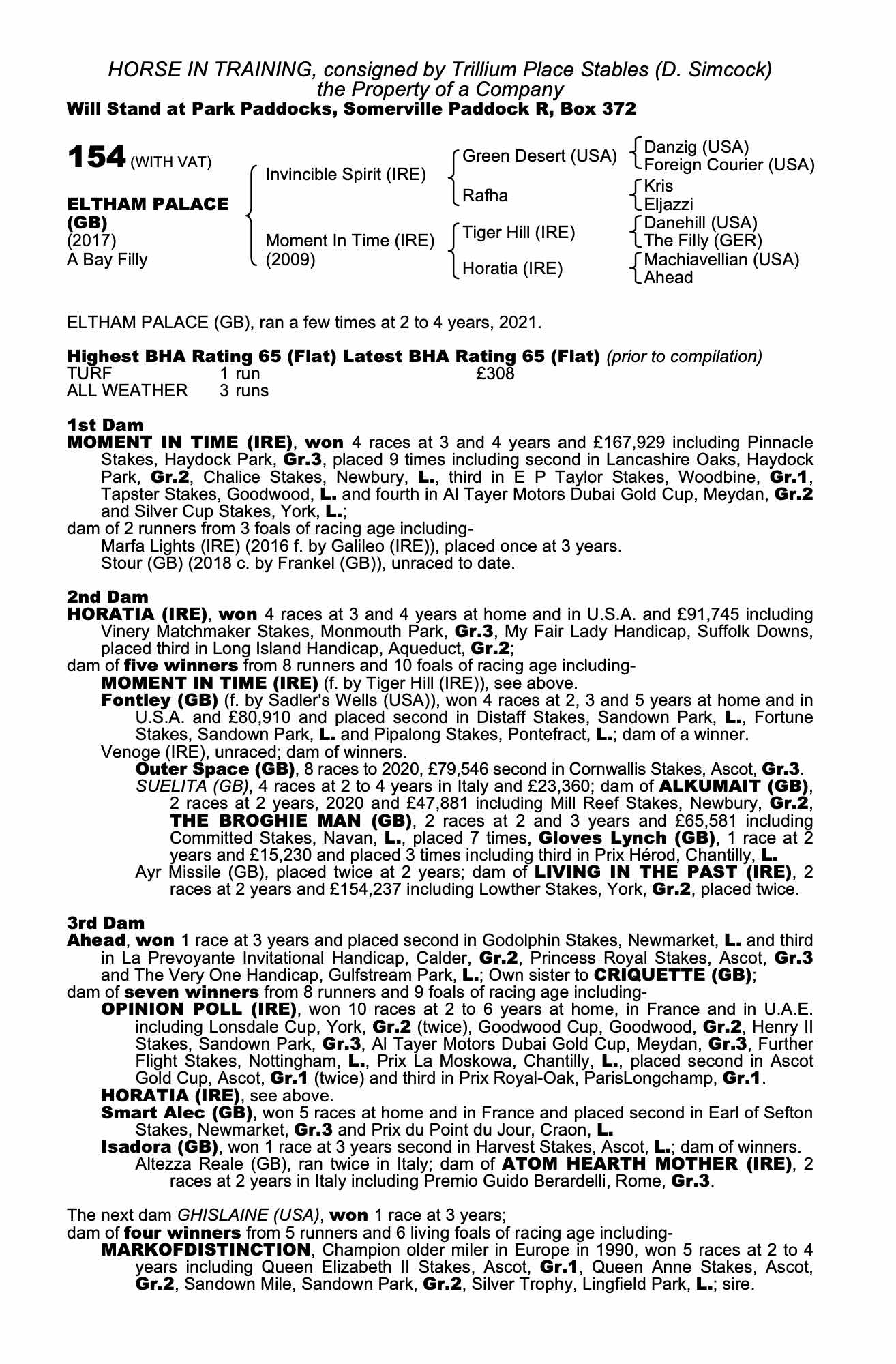 Consignor: Trillium Place Stables (D. Simcock)