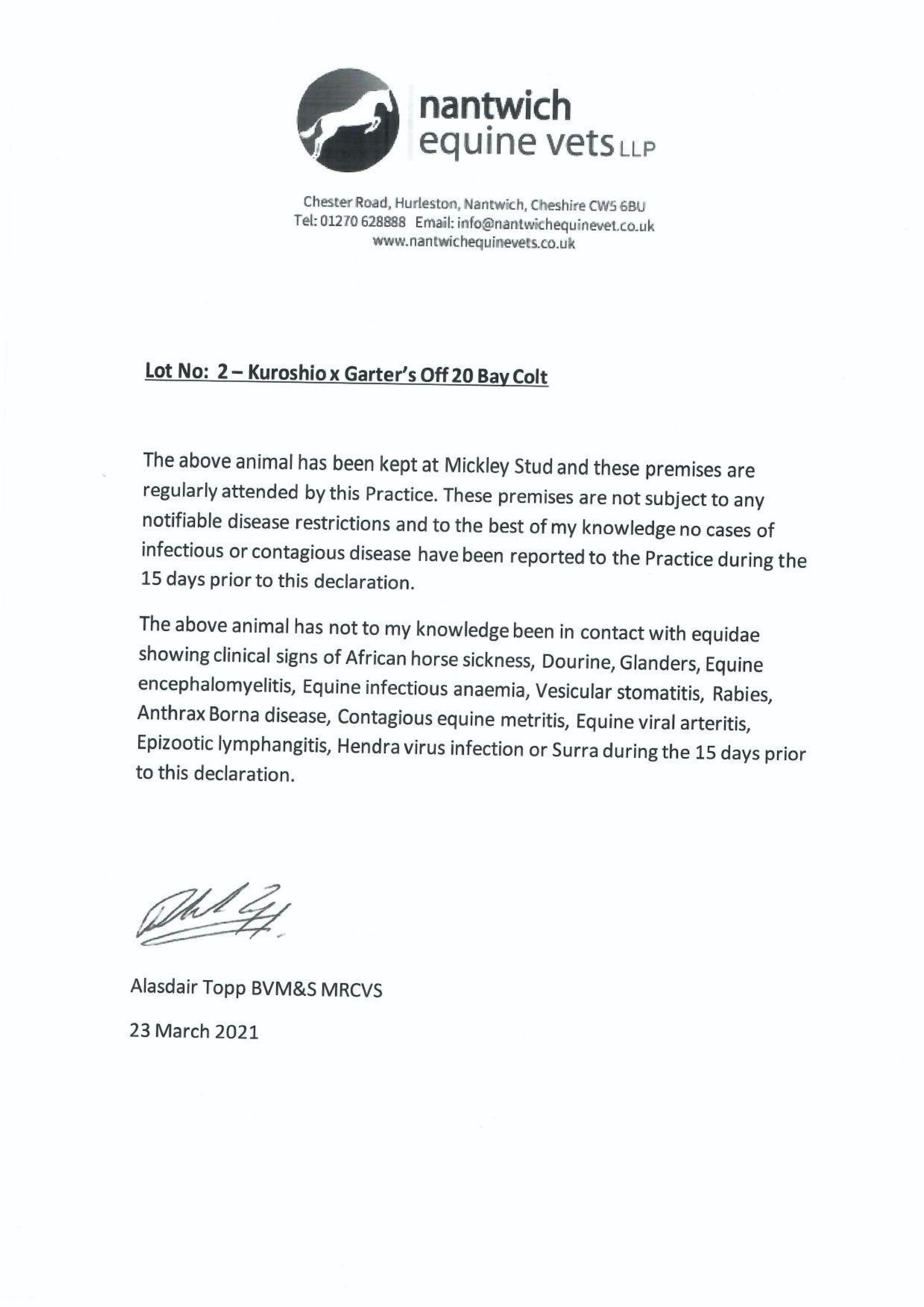 Mickley Stud Ltd.=>Lot Not Sold