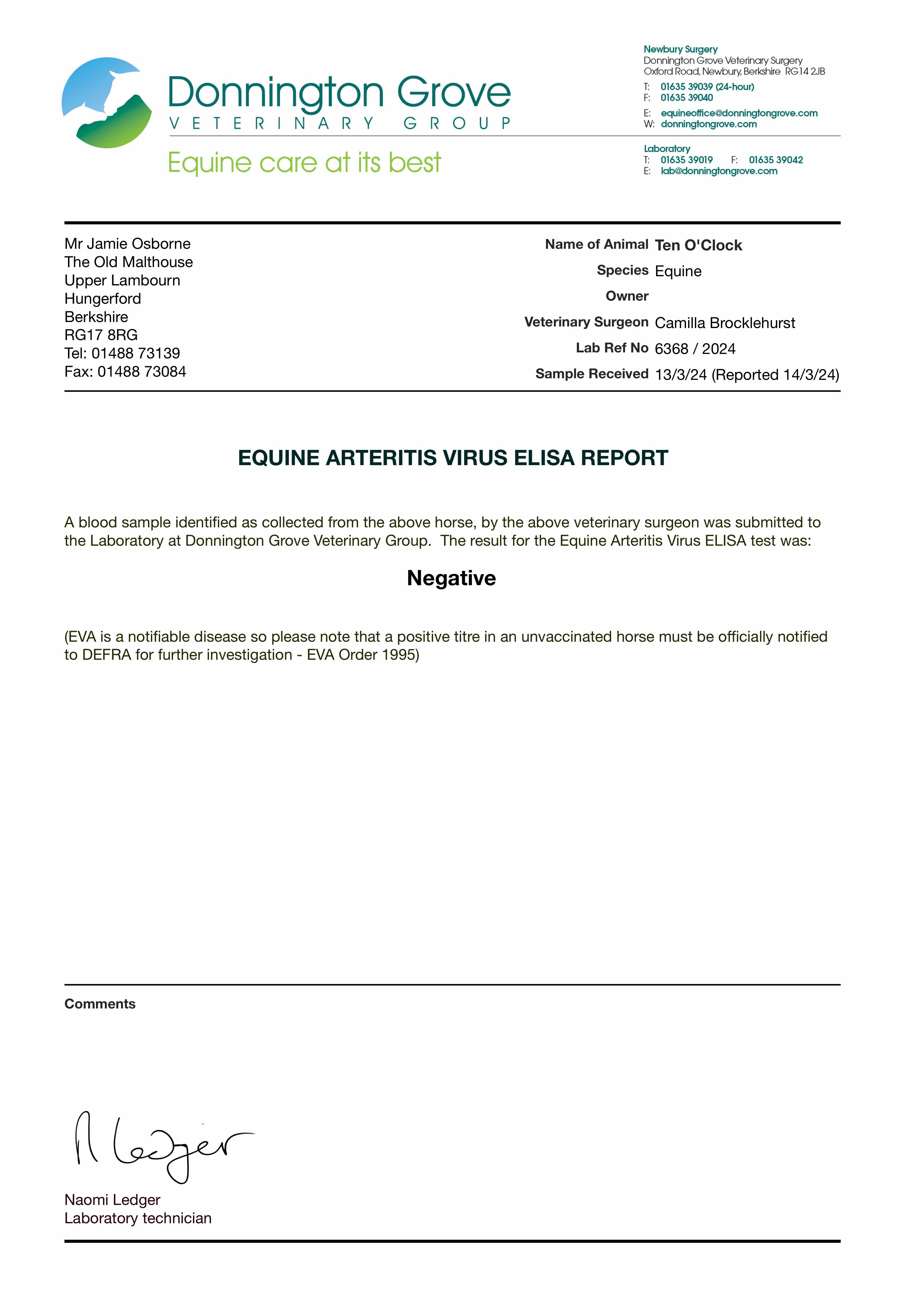 Consignor: The Old Malthouse Stables (J. Osborne)