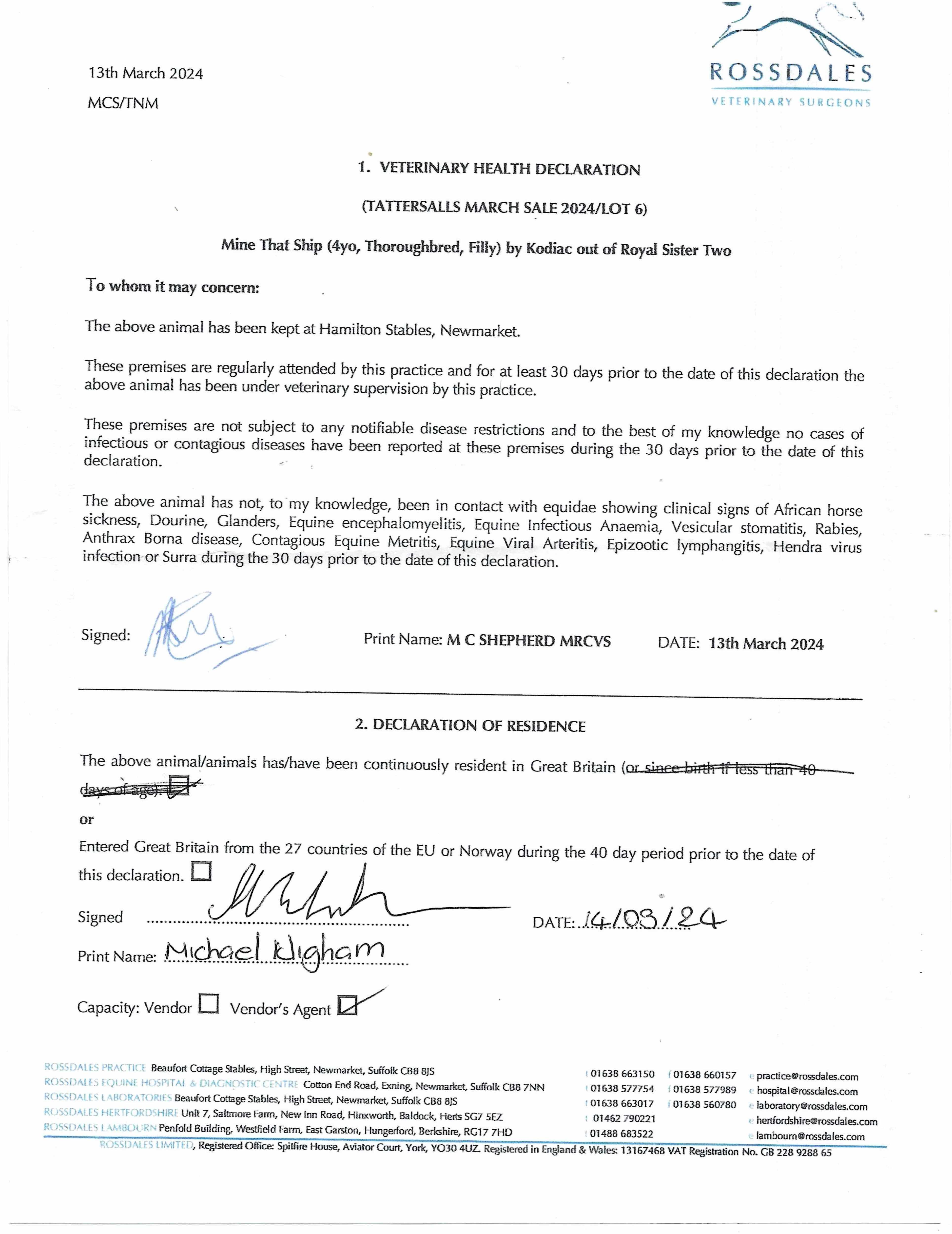 Online Sale - 6th June 2024 lot 5 C. by U S Navy Flag (USA) 2022, Highfield Bloodstock=>Vendor 2,200 gns