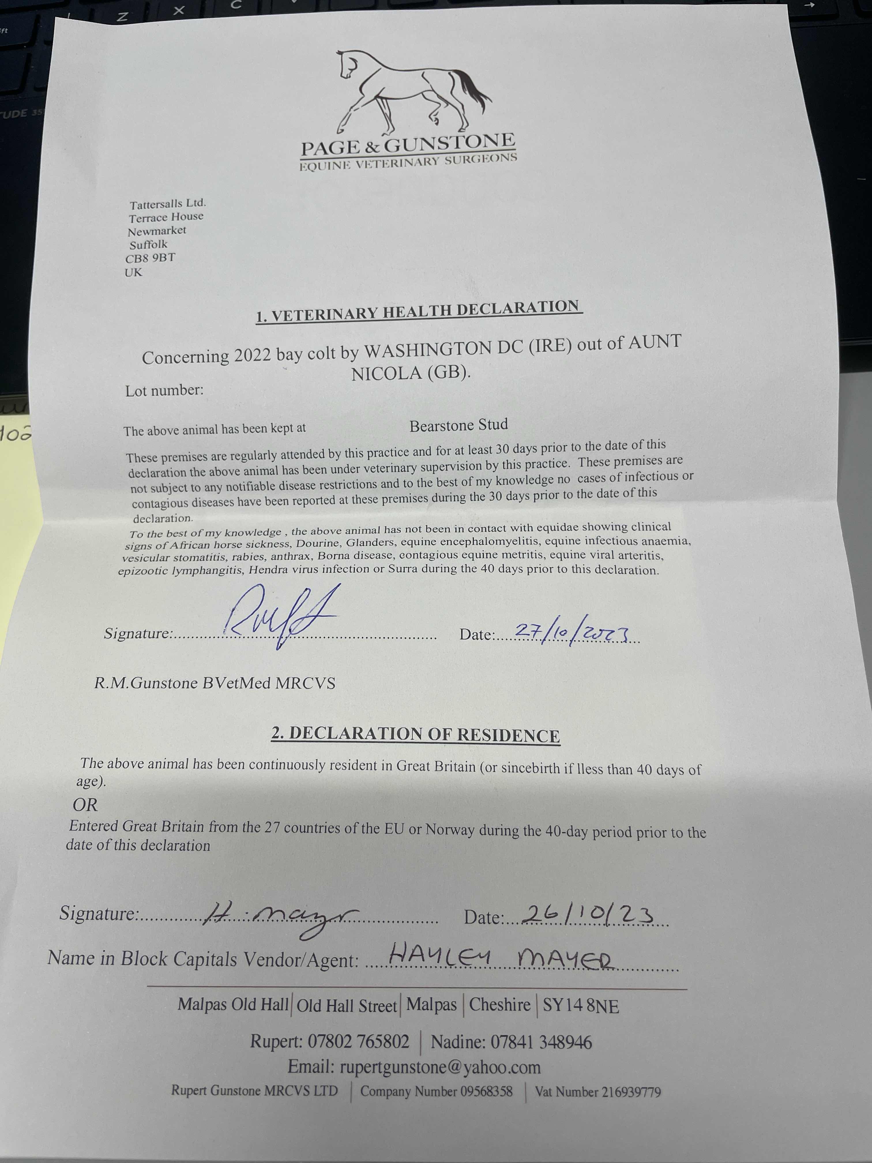 Consignor: Bearstone Stud
