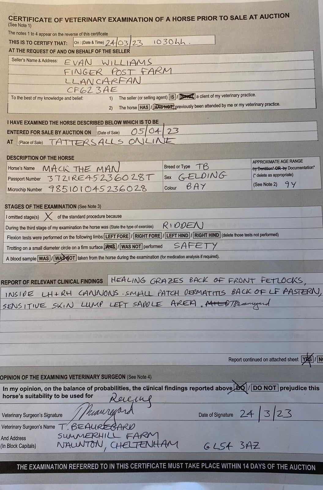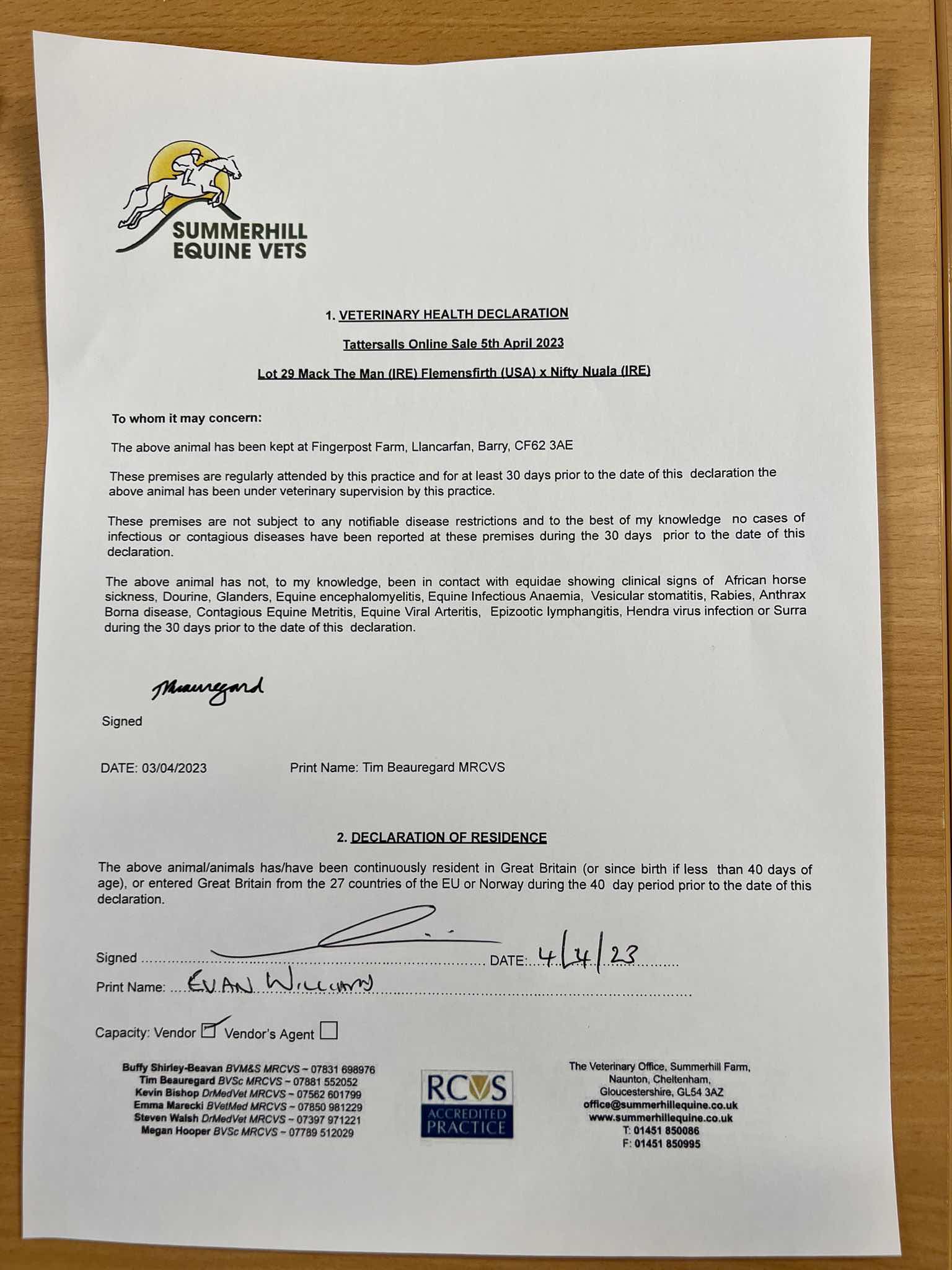 Vet Certificate
