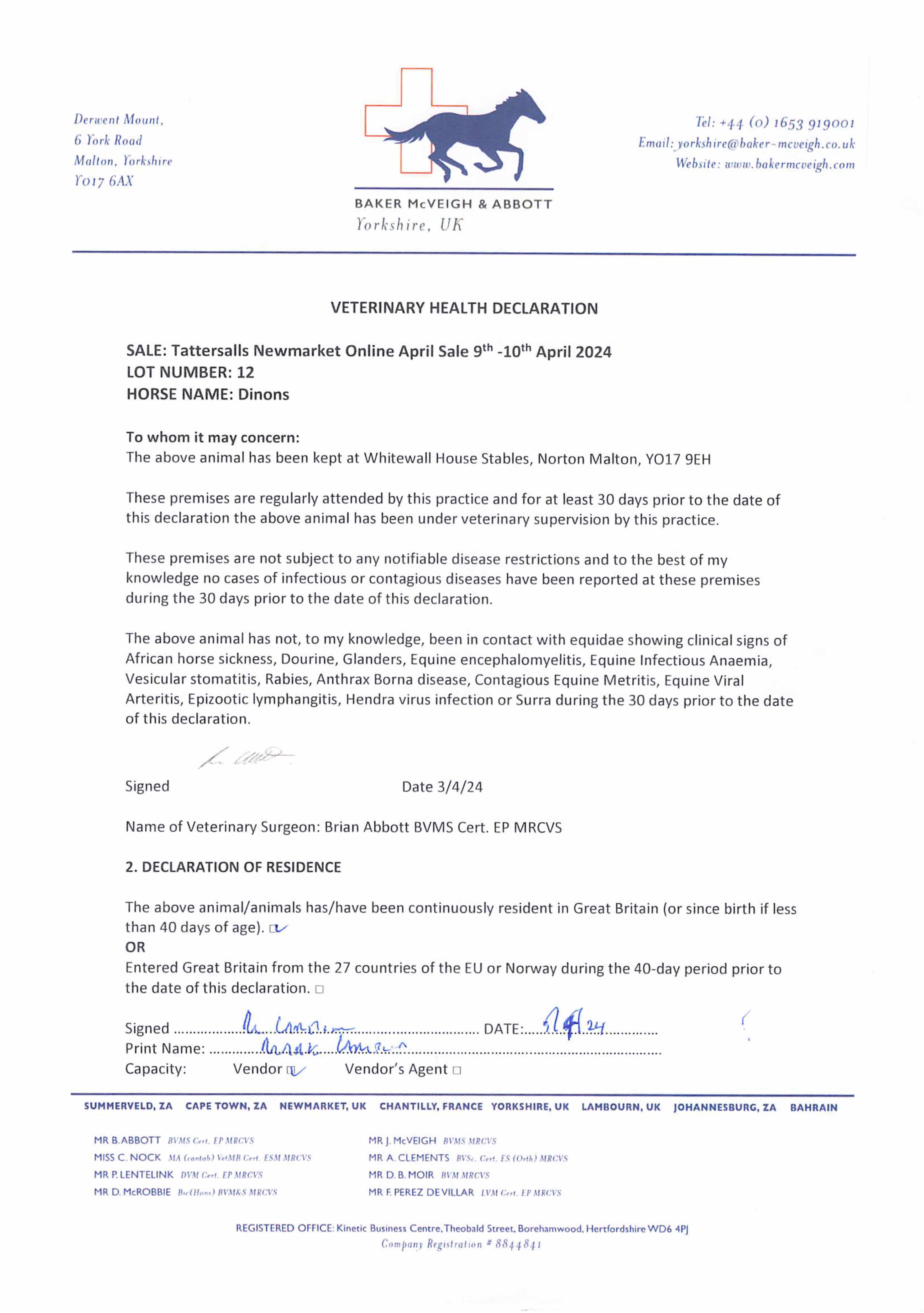 Vet Certificate