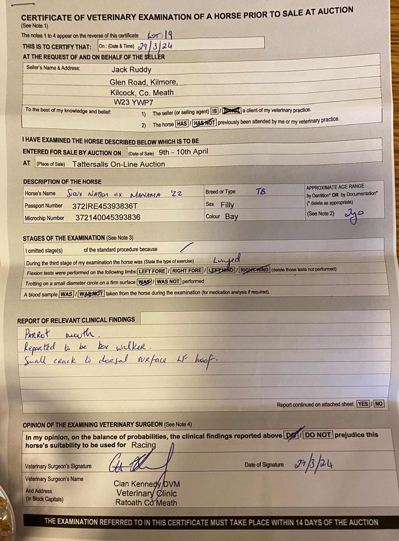 Consignor: Mr Jack Ruddy