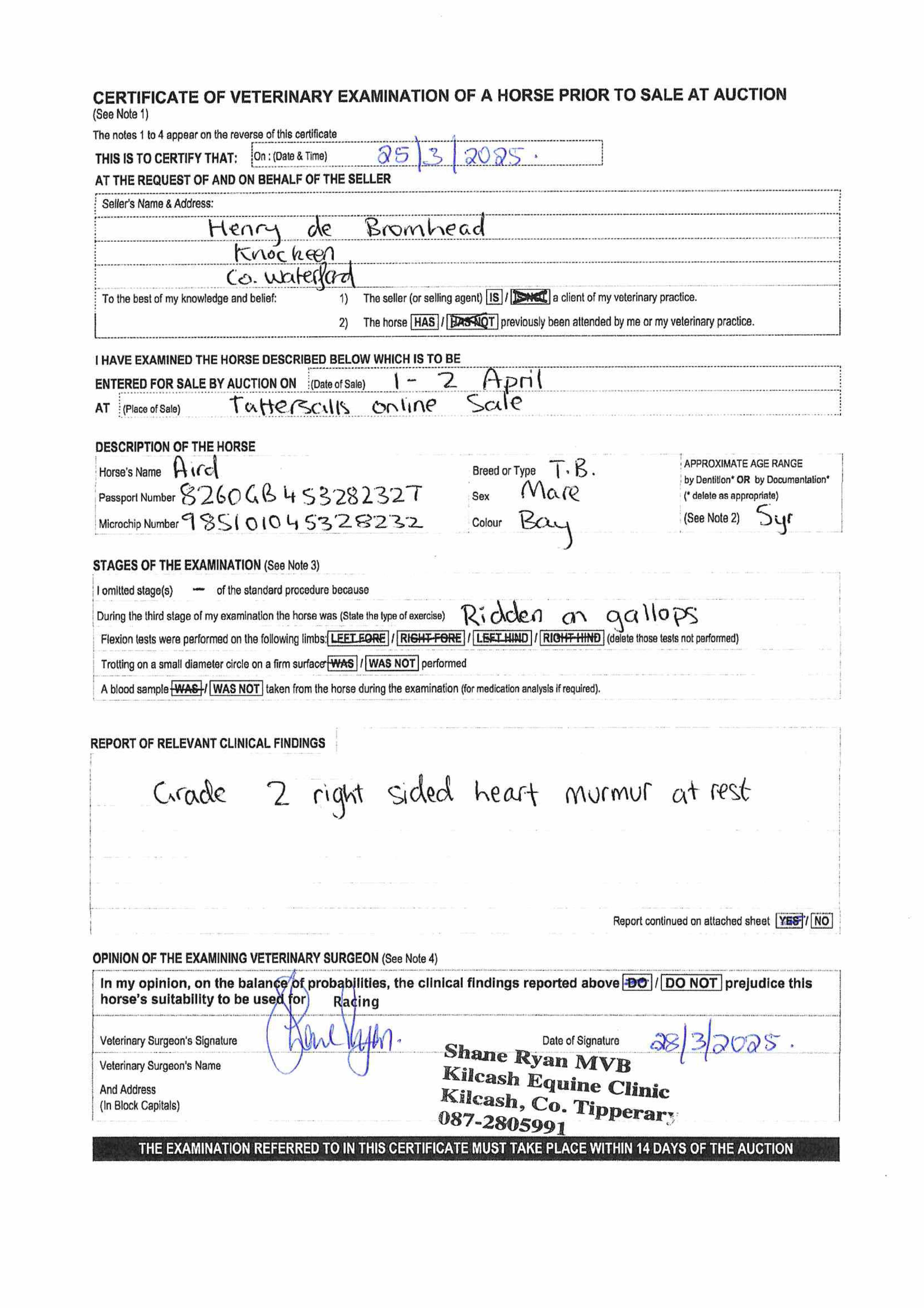 For time sensitive requests please call Tattersalls on +44(0)1638665931