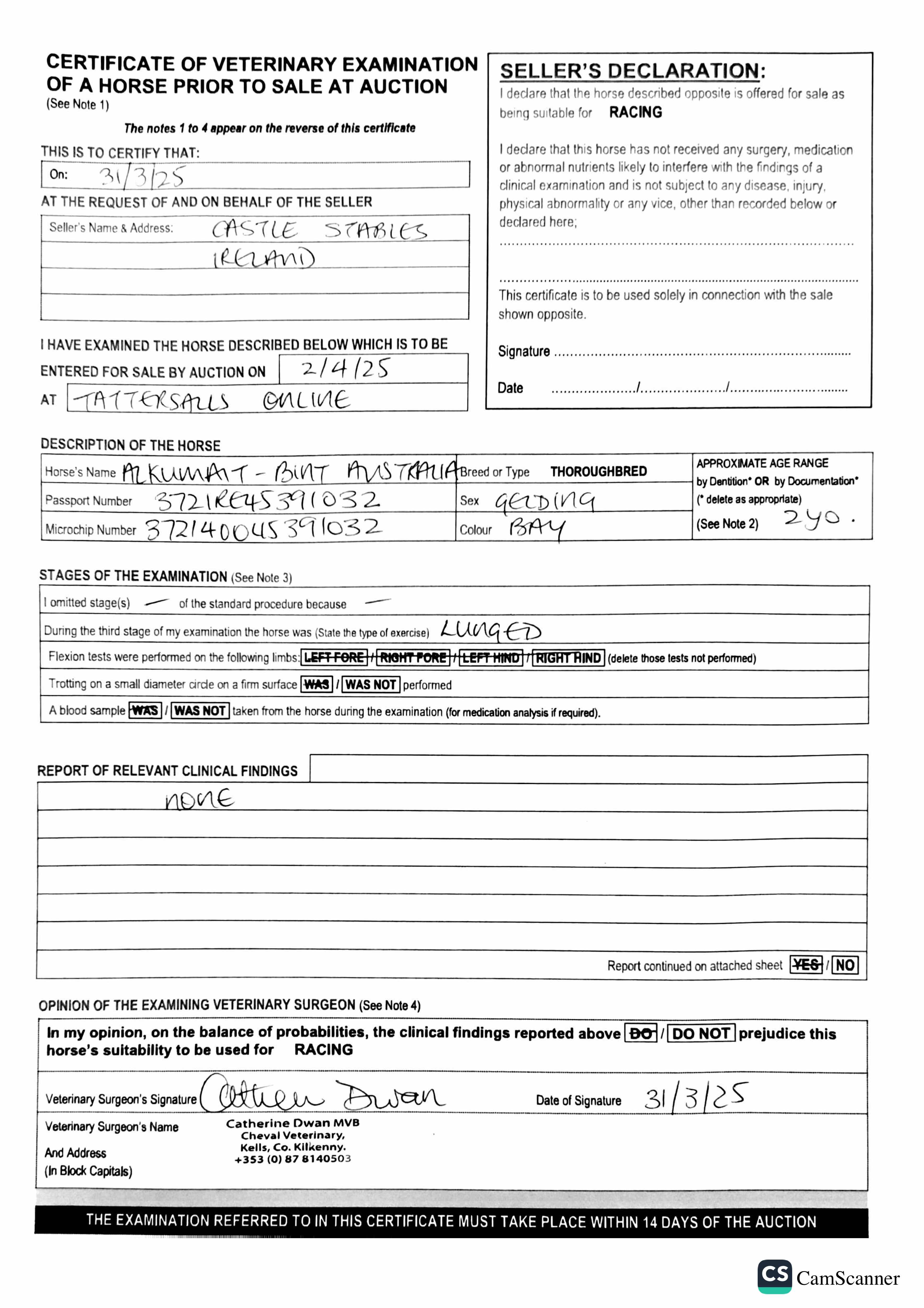 For time sensitive requests please call Tattersalls on +44(0)1638665931