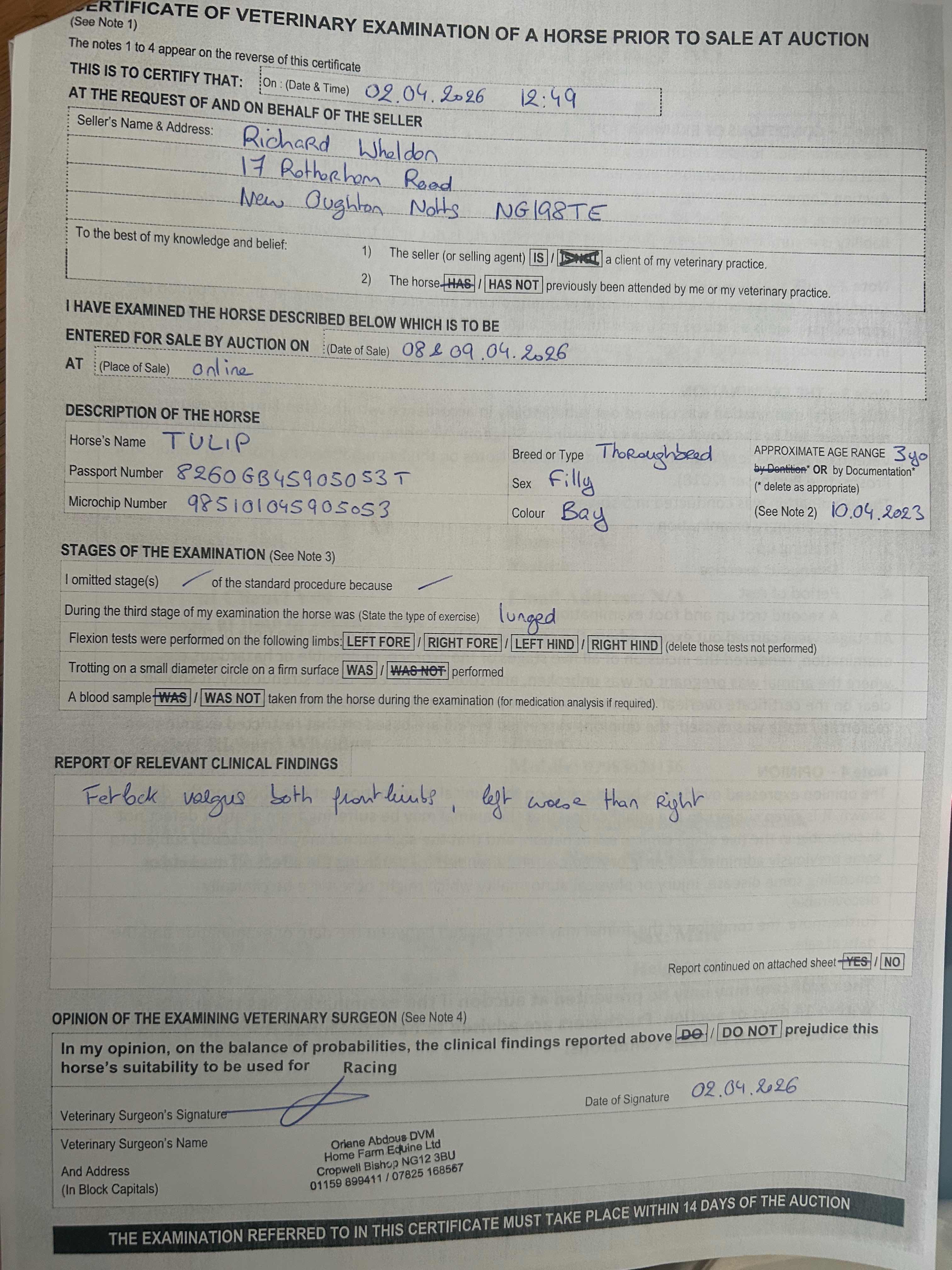 For time sensitive requests please call Tattersalls on +44(0)1638665931