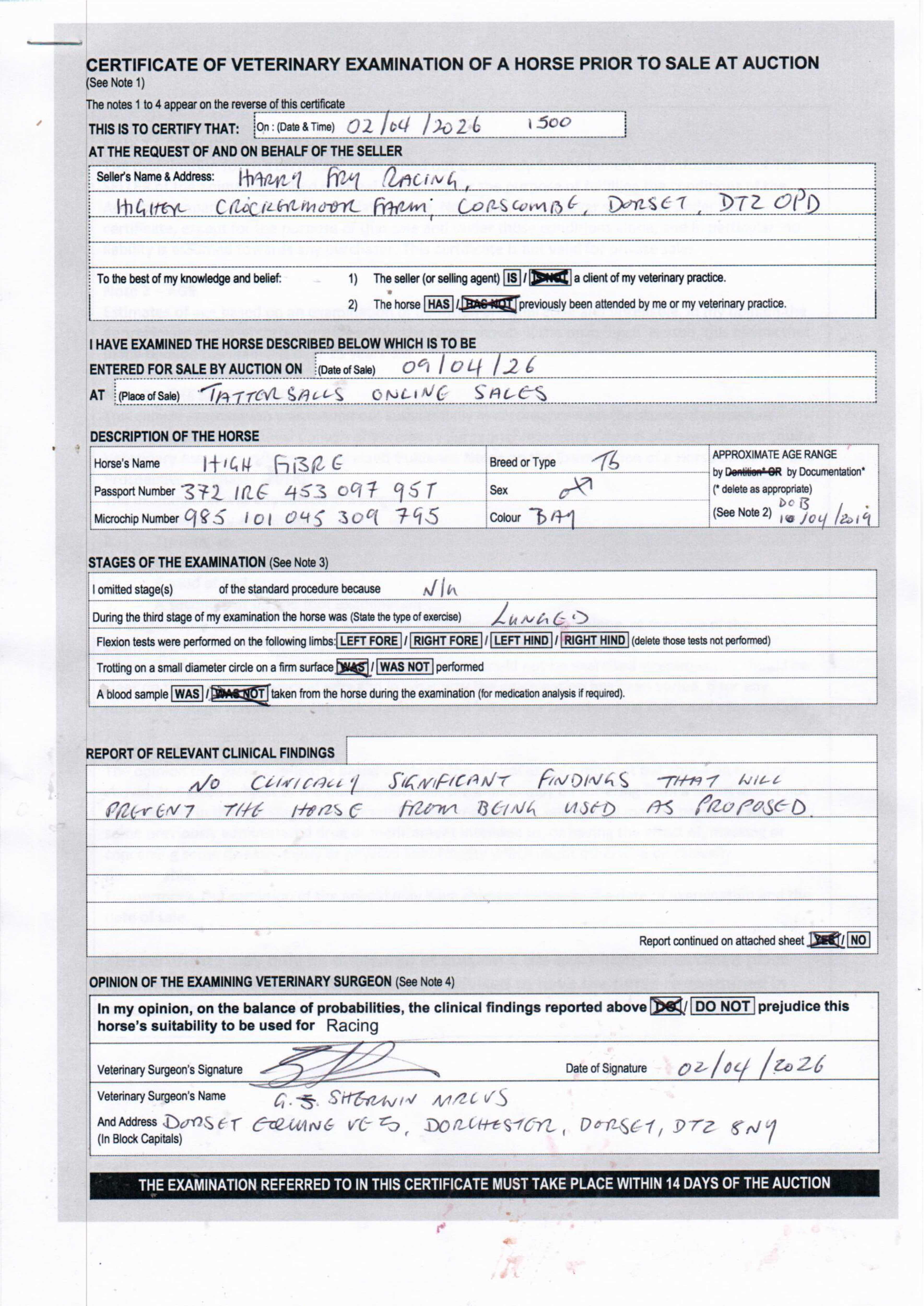 For time sensitive requests please call Tattersalls on +44(0)1638665931