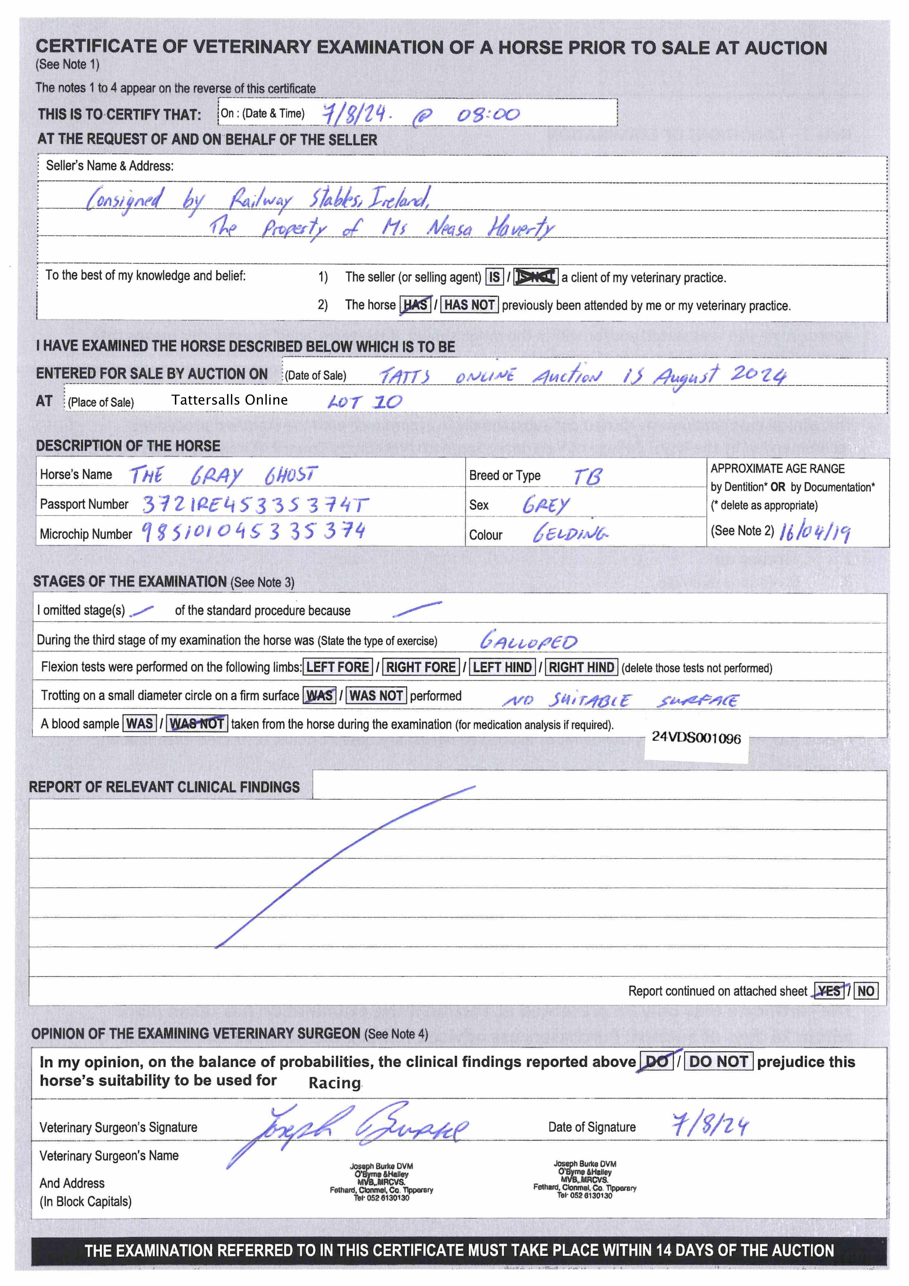 Vendor's Notes: unextend winner of a killarney bumper on the 18/7/24 over 2miles 1furlong with lots of improvement to come the second horse has since won and franked the form. jumps very well.