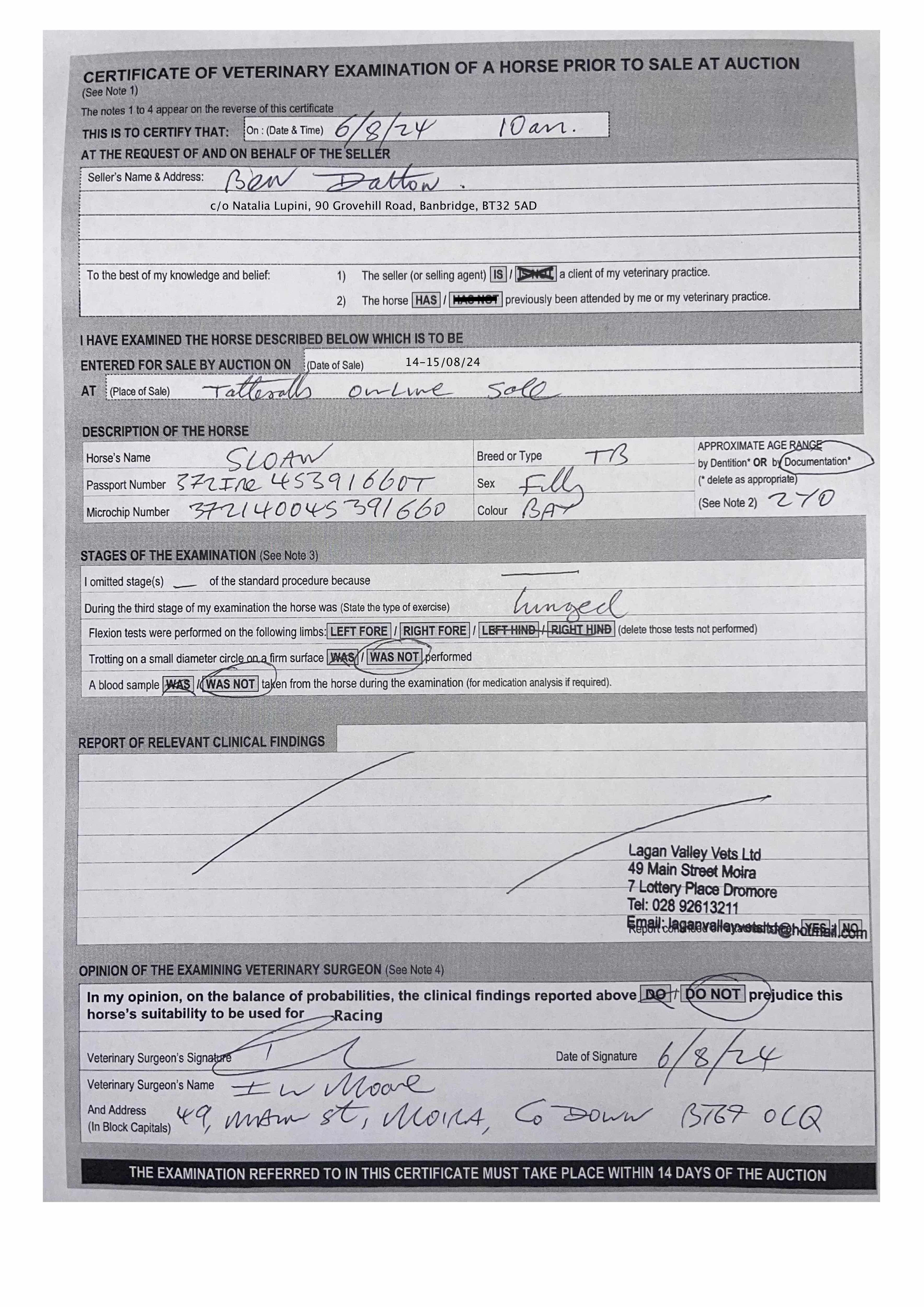 For time sensitive requests please call Tattersalls on +44(0)1638665931