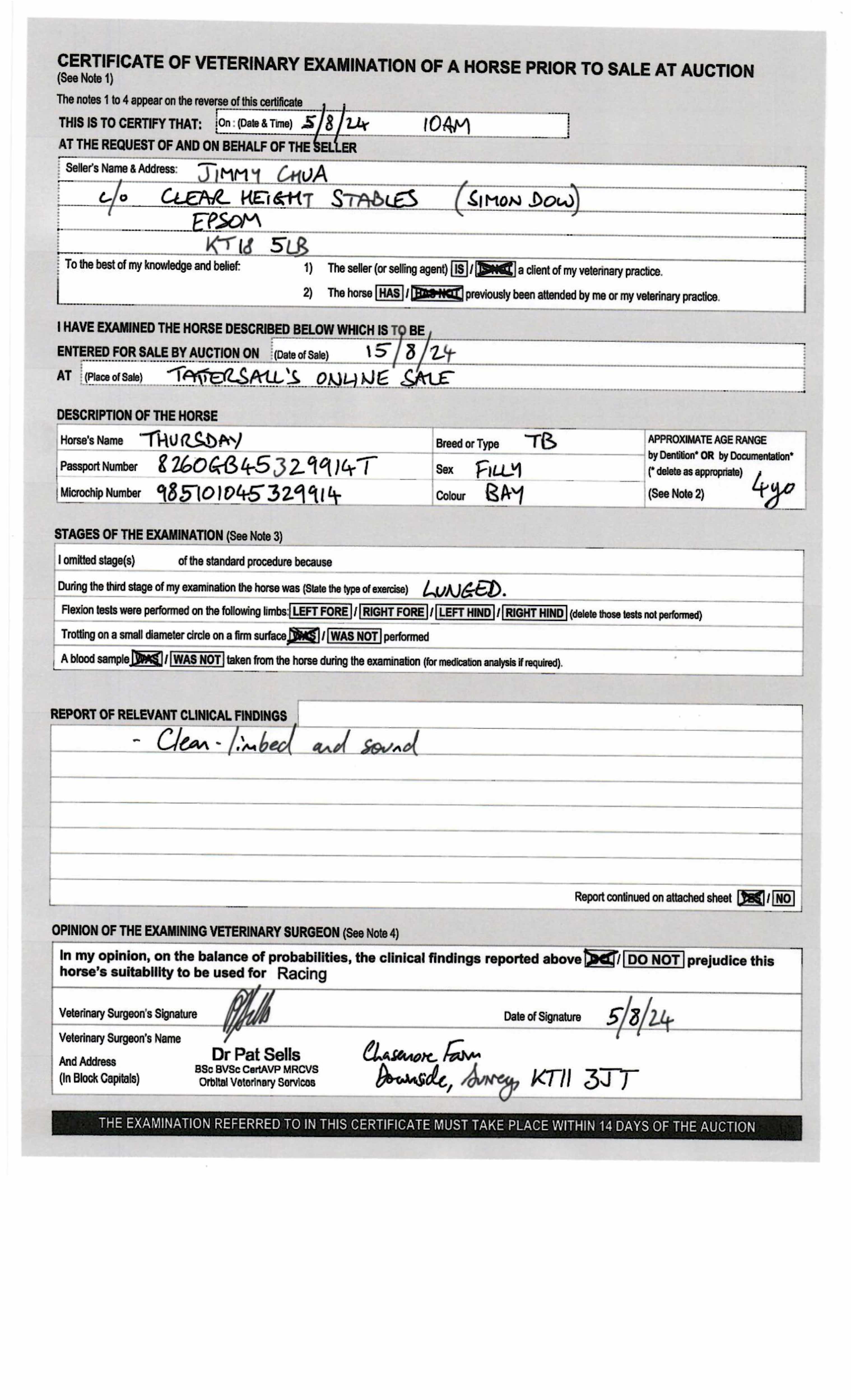 Autumn Horses In Training Sale 2024 lot 368, Clear Height Stables (S. Dow)=>Lot Not Sold 7,500 gns