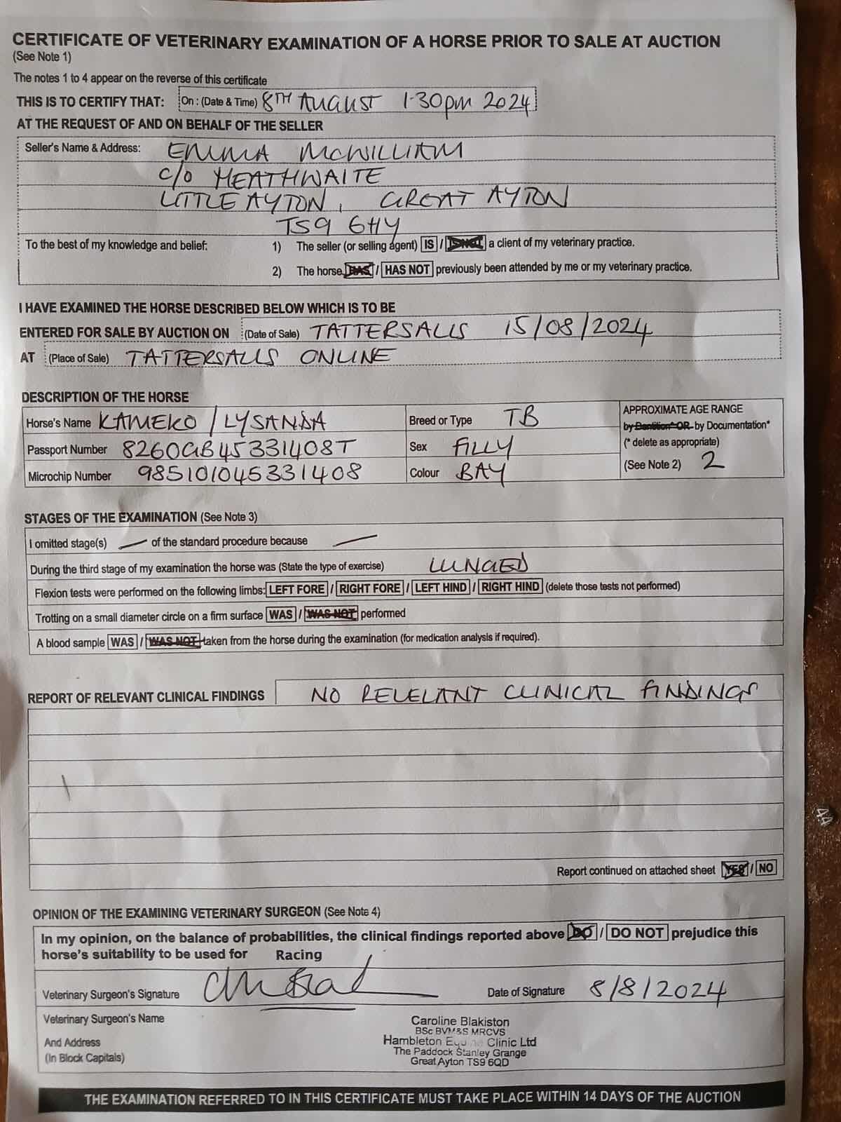 Vendor's Notes: This filly was broken in late through no fault of her own. She's currently in pre training with John Dawson and is showing a great attitude to her work, now ready to go into full training. A really exciting prospect, out of the FULL sister to LOYALTY, dam of 2024 Cheltenham Festival winner Lark In The Mornin.