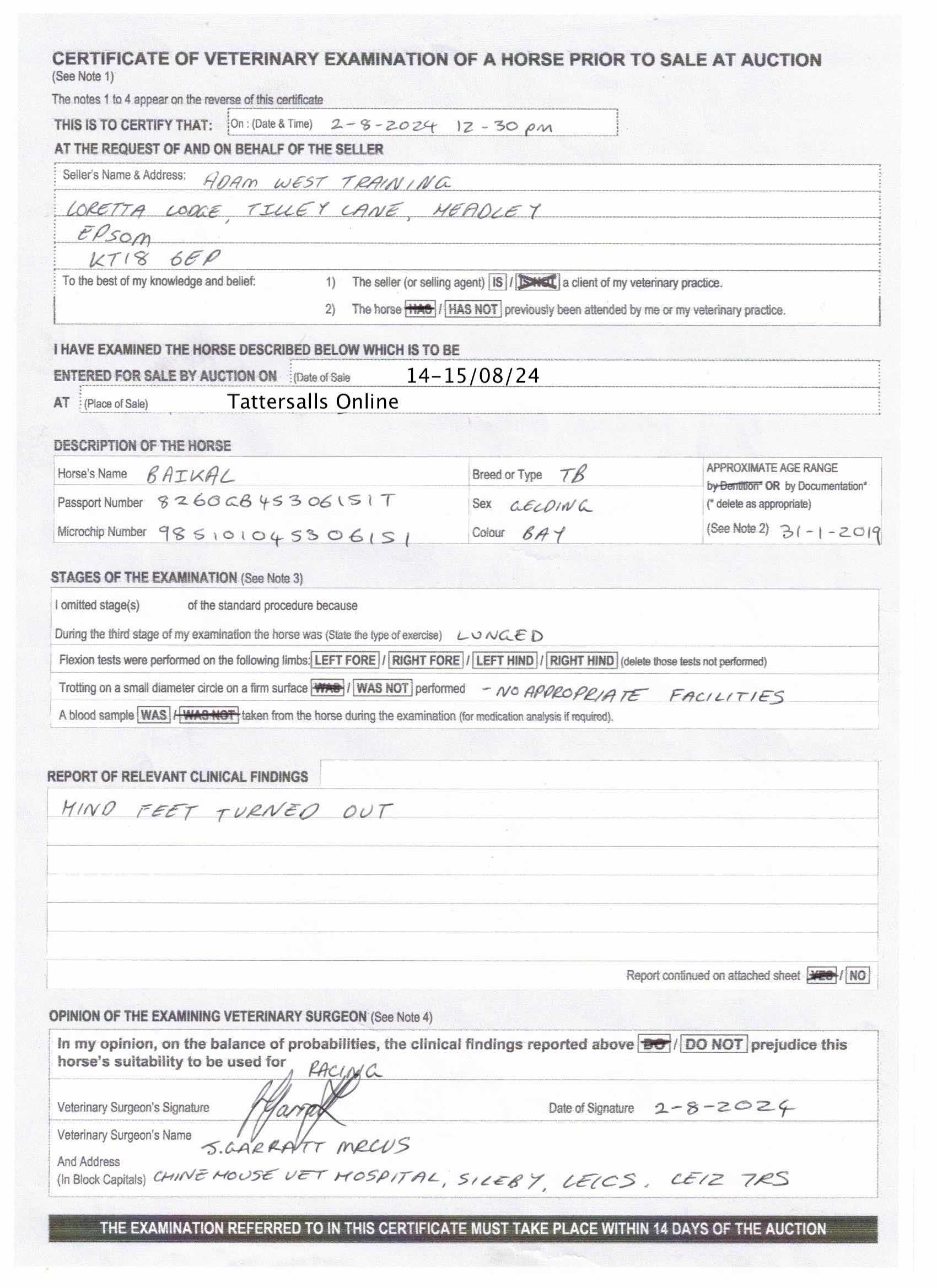 For time sensitive requests please call Tattersalls on +44(0)1638665931
