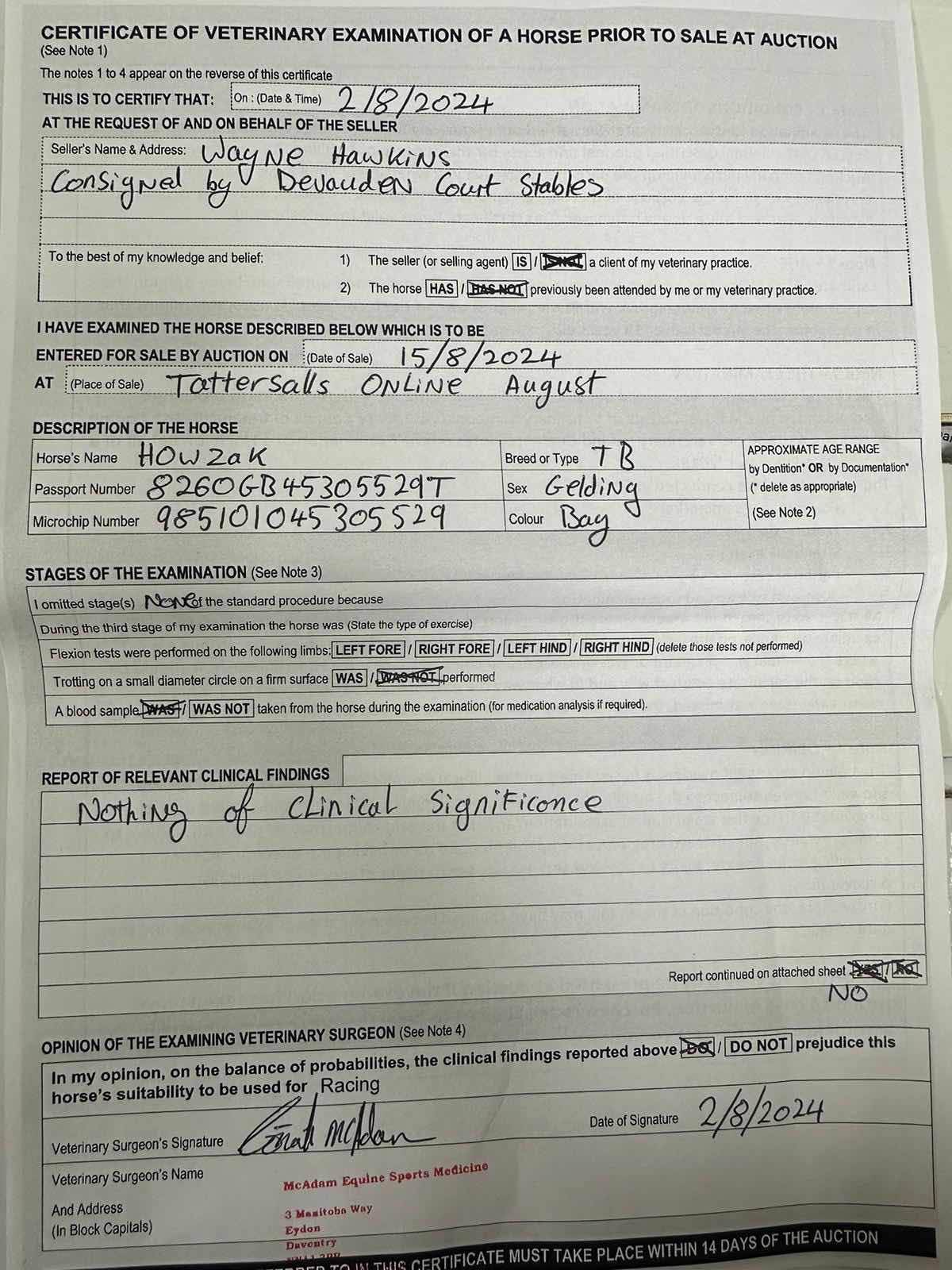 For time sensitive requests please call Tattersalls on +44(0)1638665931