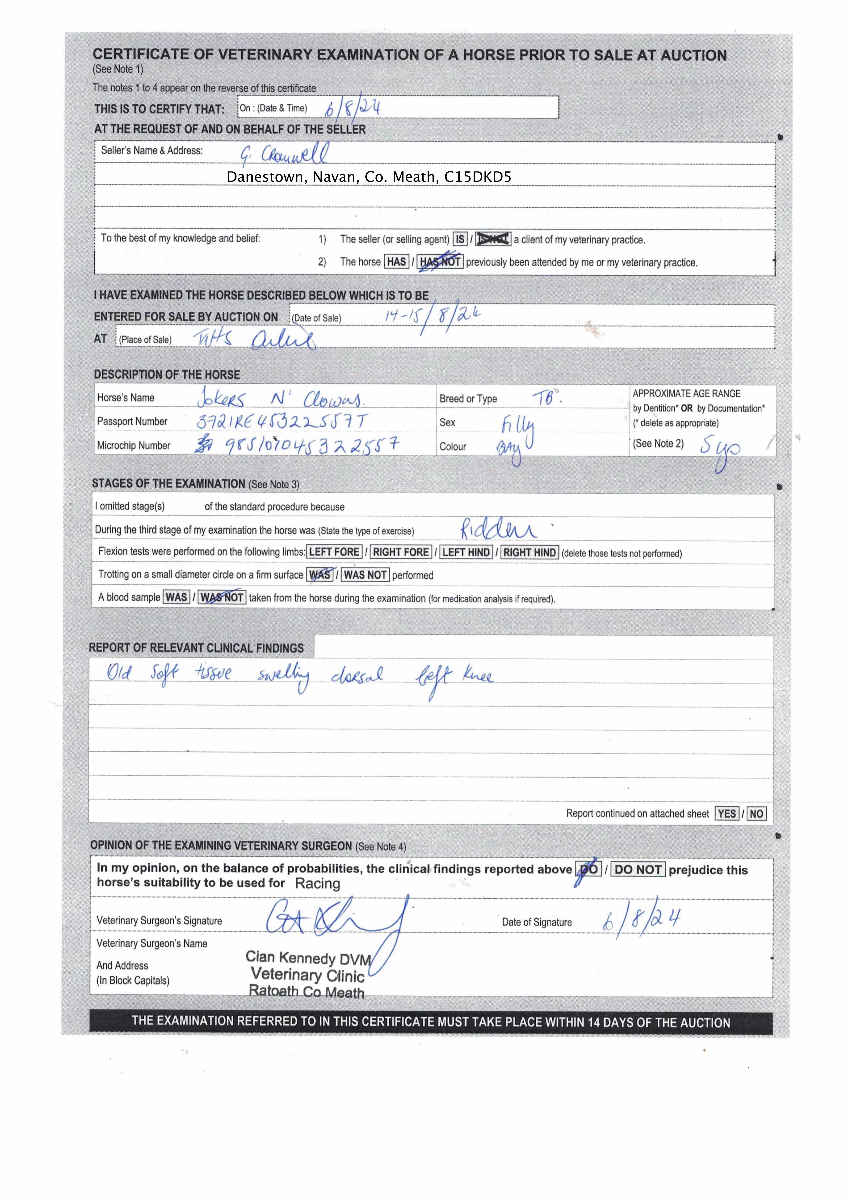 Vendor's Notes: Impressive winner on her debut of a Tattersalls point to point. Has been second in a maiden hurdle and schooled well over fences.