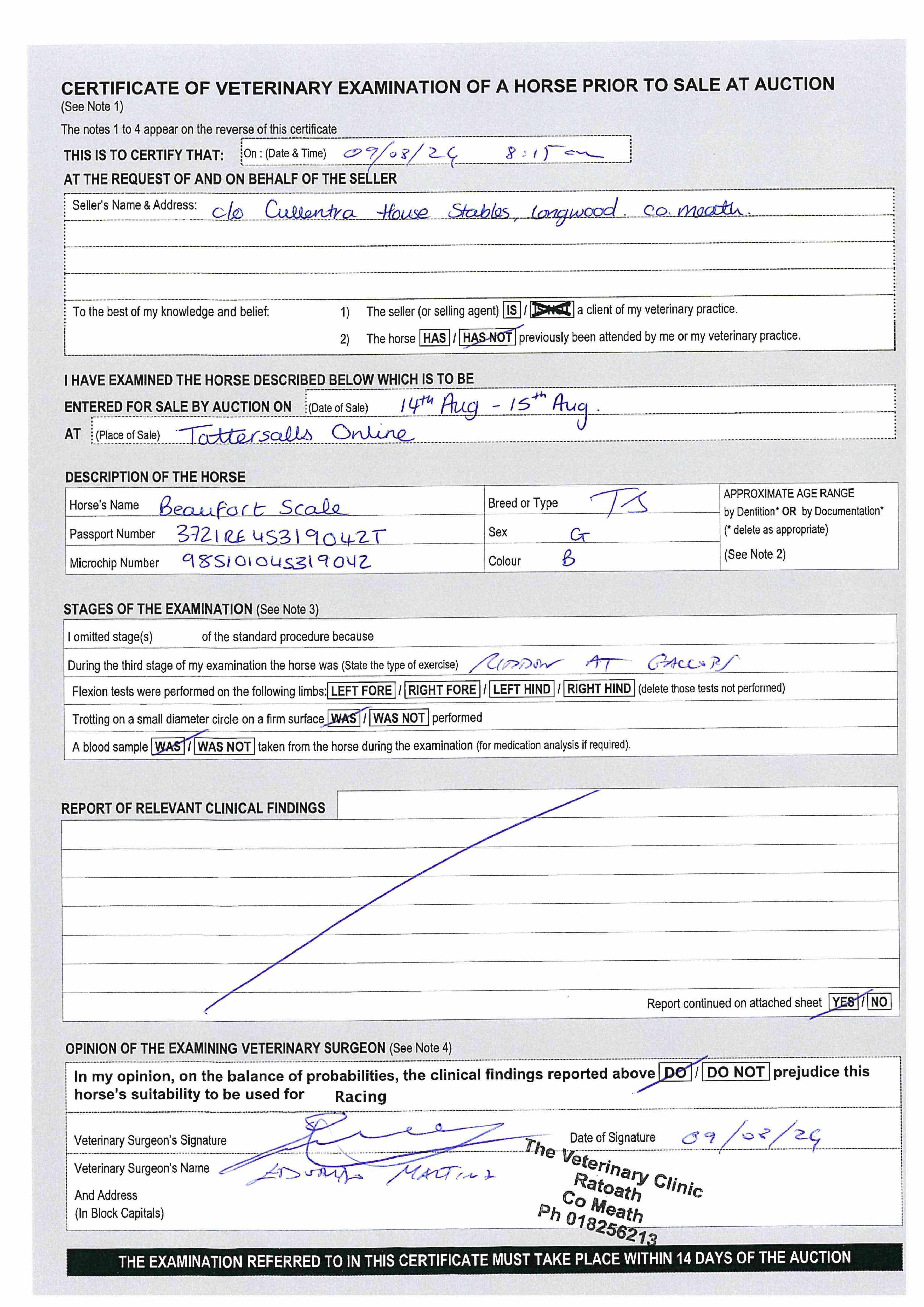 Vendor's Notes: Beaufort Scale (IRE) B.G. by Sholokhov (IRE) x Carrigeen Aspen (IRE)