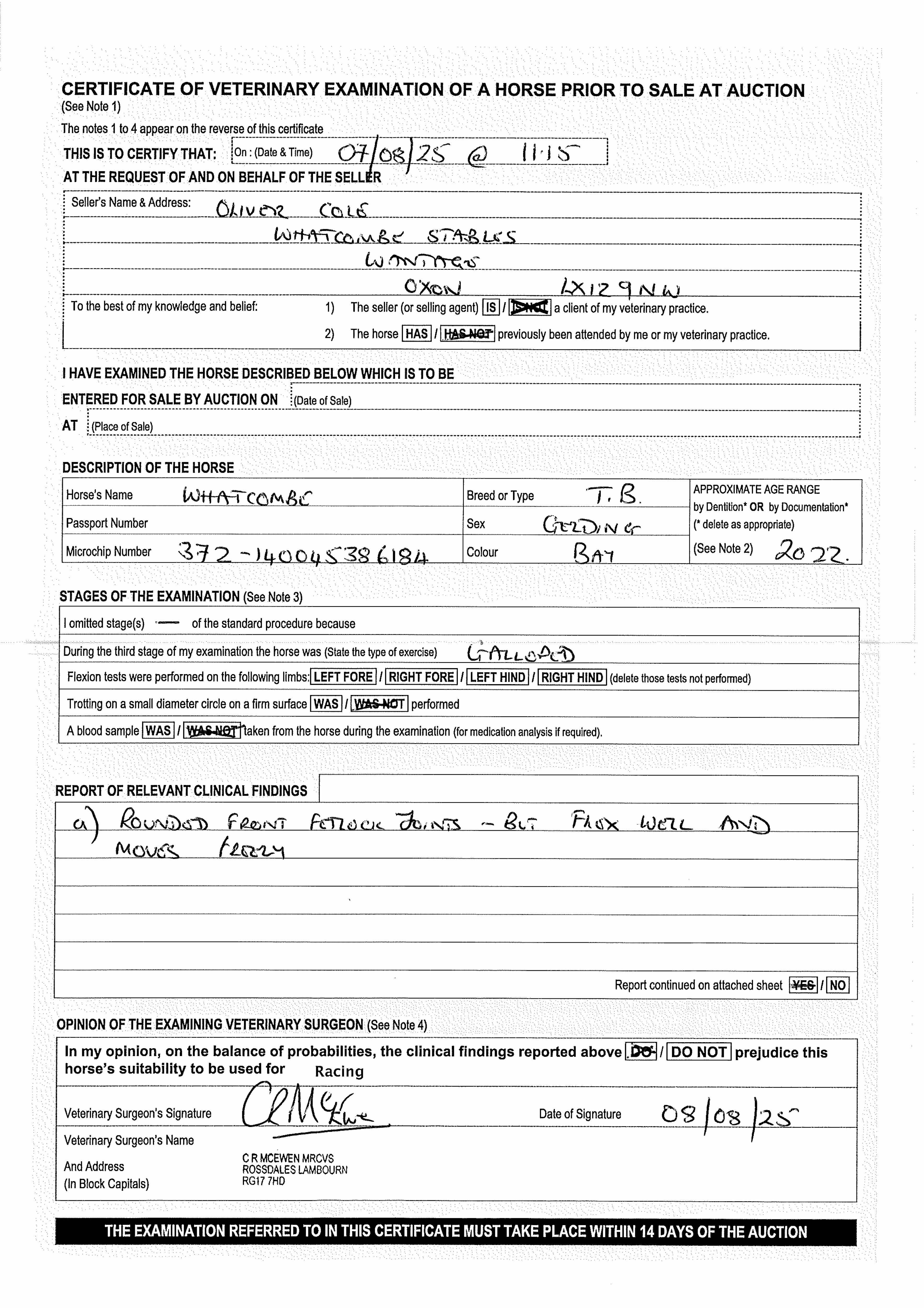 Vet Certificate