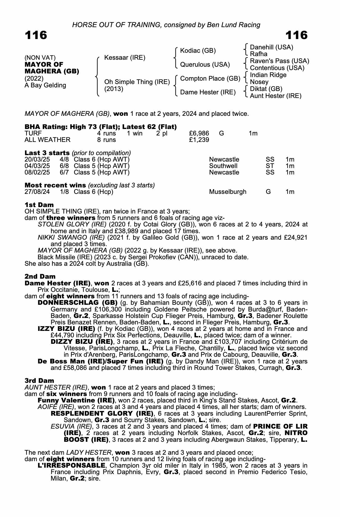 Vendor's Notes: Athletic gelding who won and placed as a 2 year old and looks well handicapped to go on and win more races. He has the scope and potential to progress and should give new connections plenty of fun. Was in full training until recently however owner is now concentrating on national hunt horses that have come back into work. Sound horse with clean legs and wind. No previous injuries, health issues or vices. Has just been on the horse walker for the last few weeks but is ready to crack on again and wont take long to come to hand.