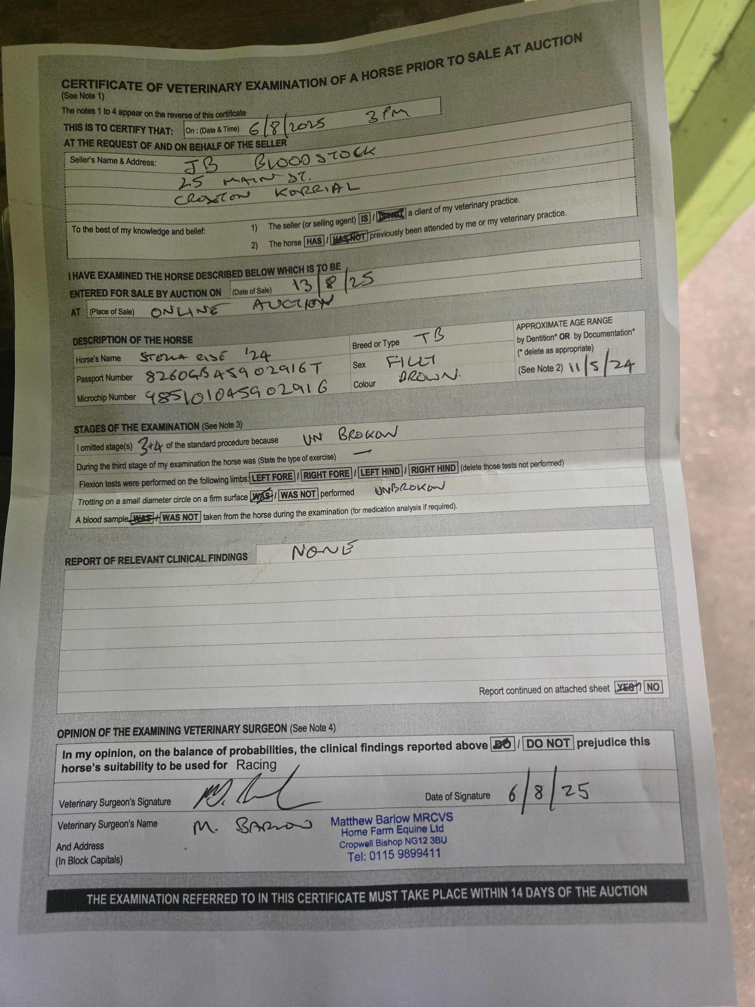 🇬🇧 Location: J.B BLOODSTOCK LTD, Newark Lane, Balderton, NG24 2SN, United Kingdom
