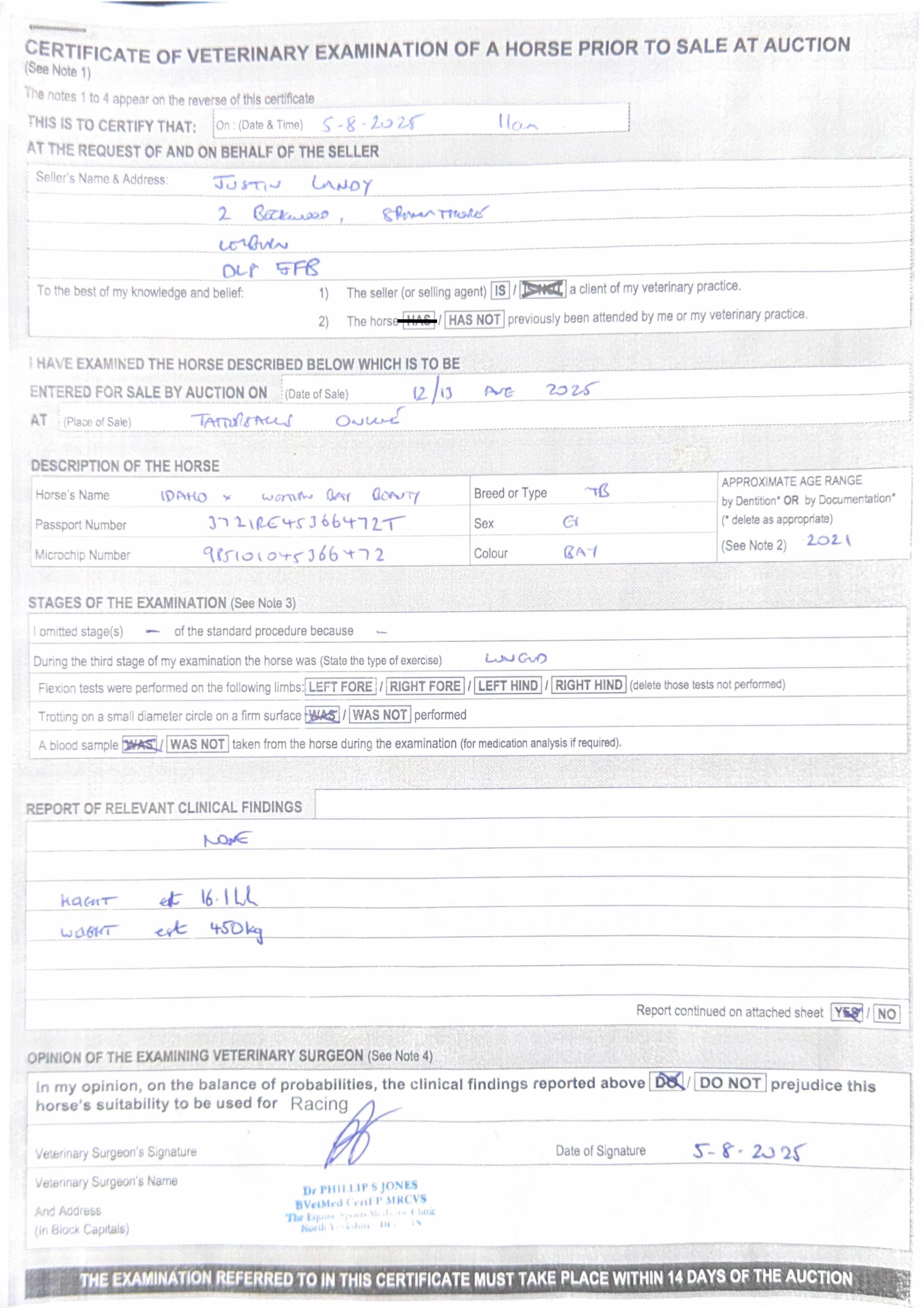 For time sensitive requests please call Tattersalls on +44(0)1638665931