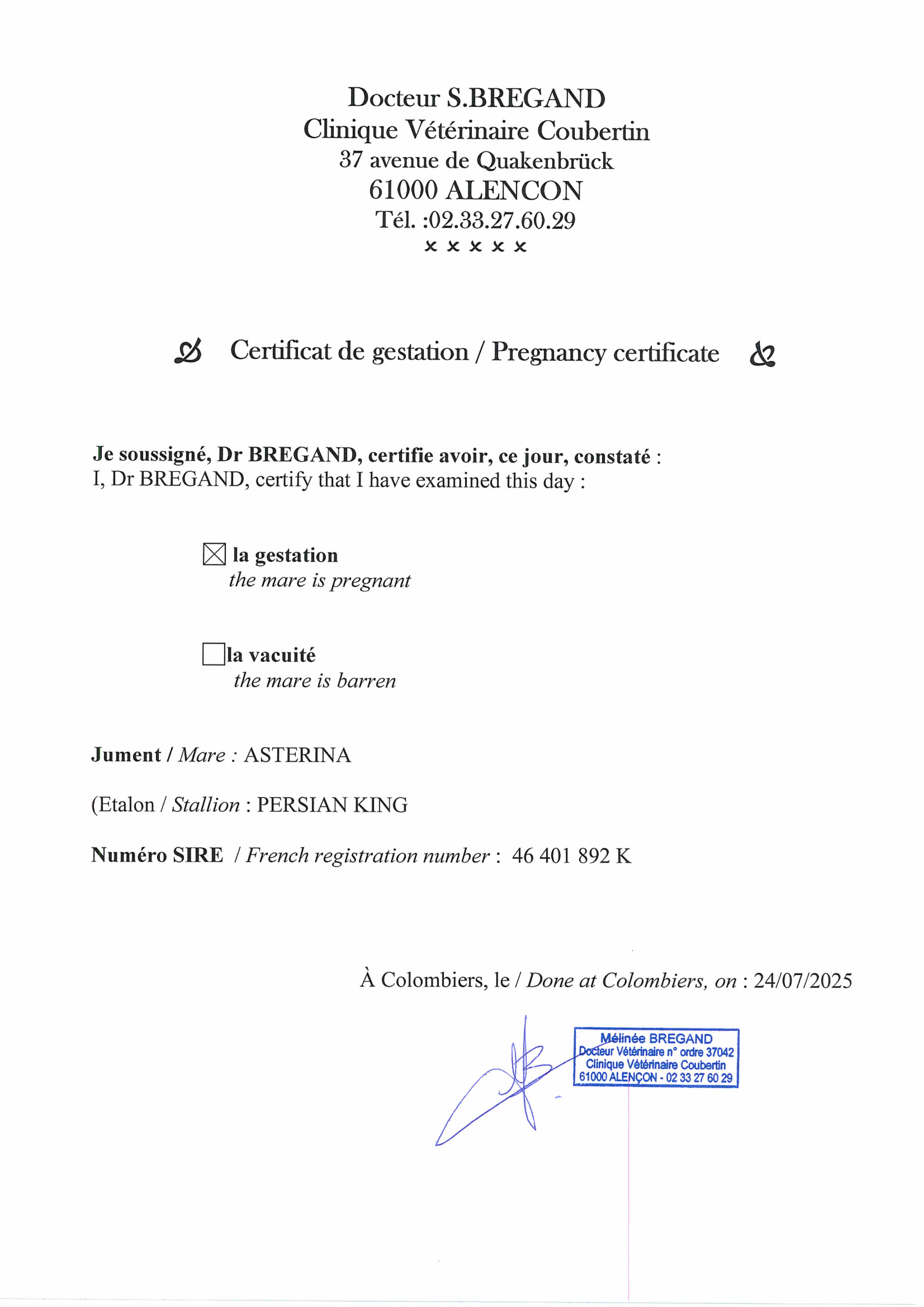 Vendor's Notes: Sexing colt at 90% for the actual pregnancy