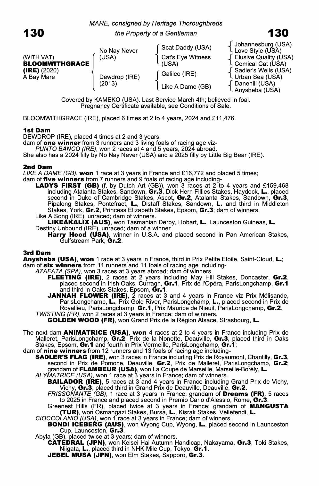 Vendor's Notes: Mare can be viewed at Heritage Thoroughbreds up until the time of sale.
