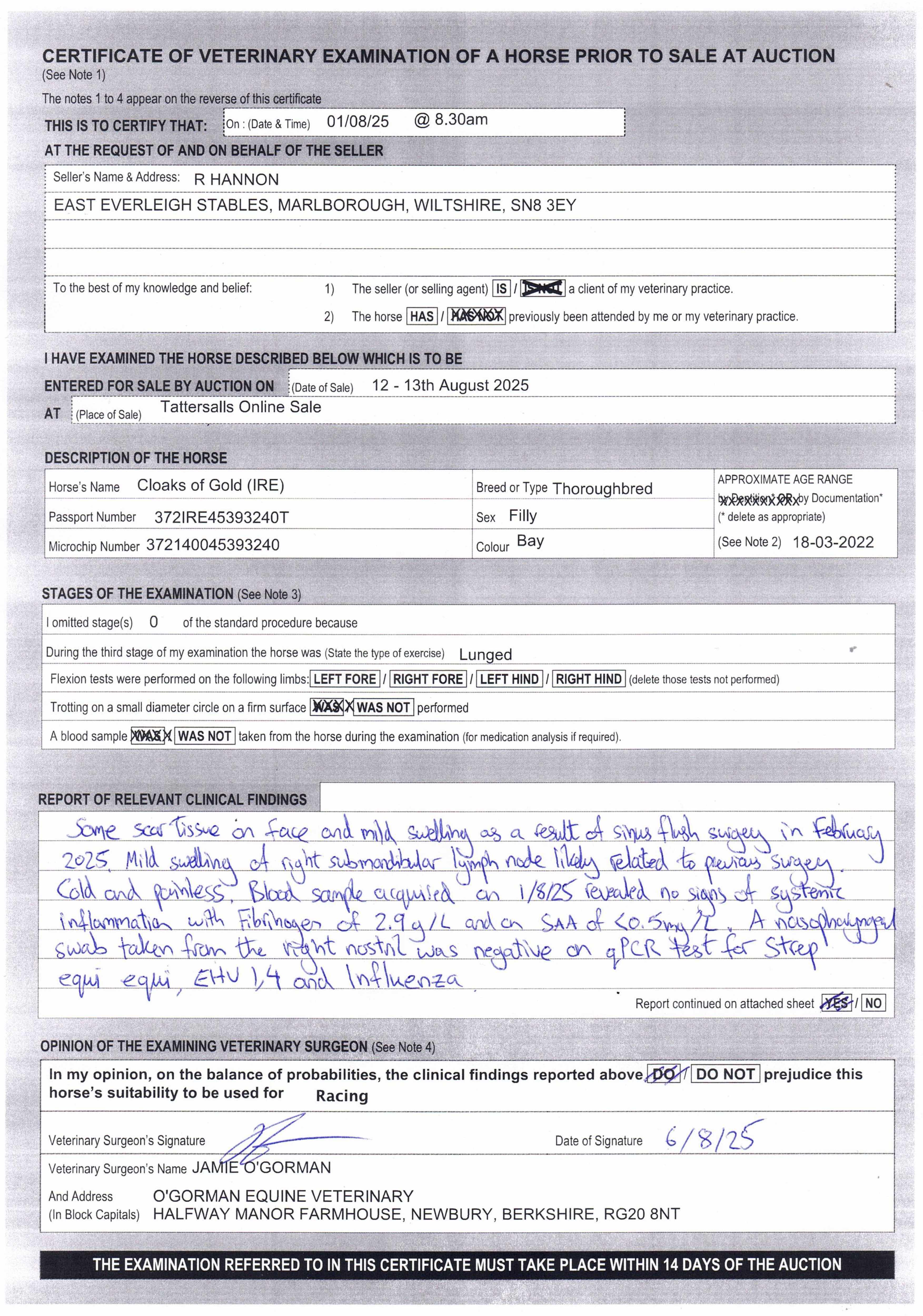 For time sensitive requests please call Tattersalls on +44(0)1638665931