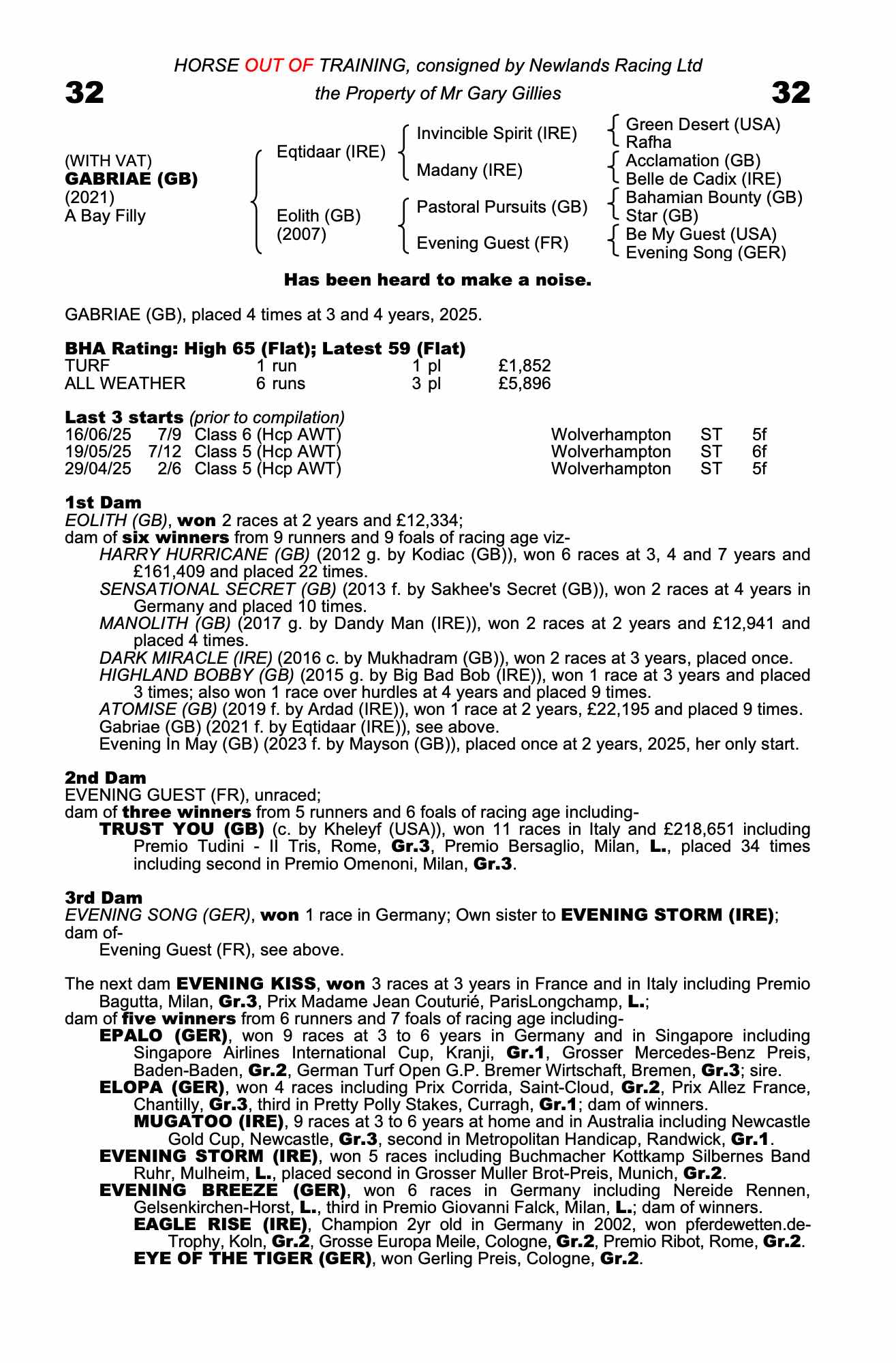Online Sale - 13th August 2025 lot 110 Evening In May (GB) (F. by Mayson (GB)), Rathmoy Stables (W. Knight)=>Lot Not Sold 900 gns