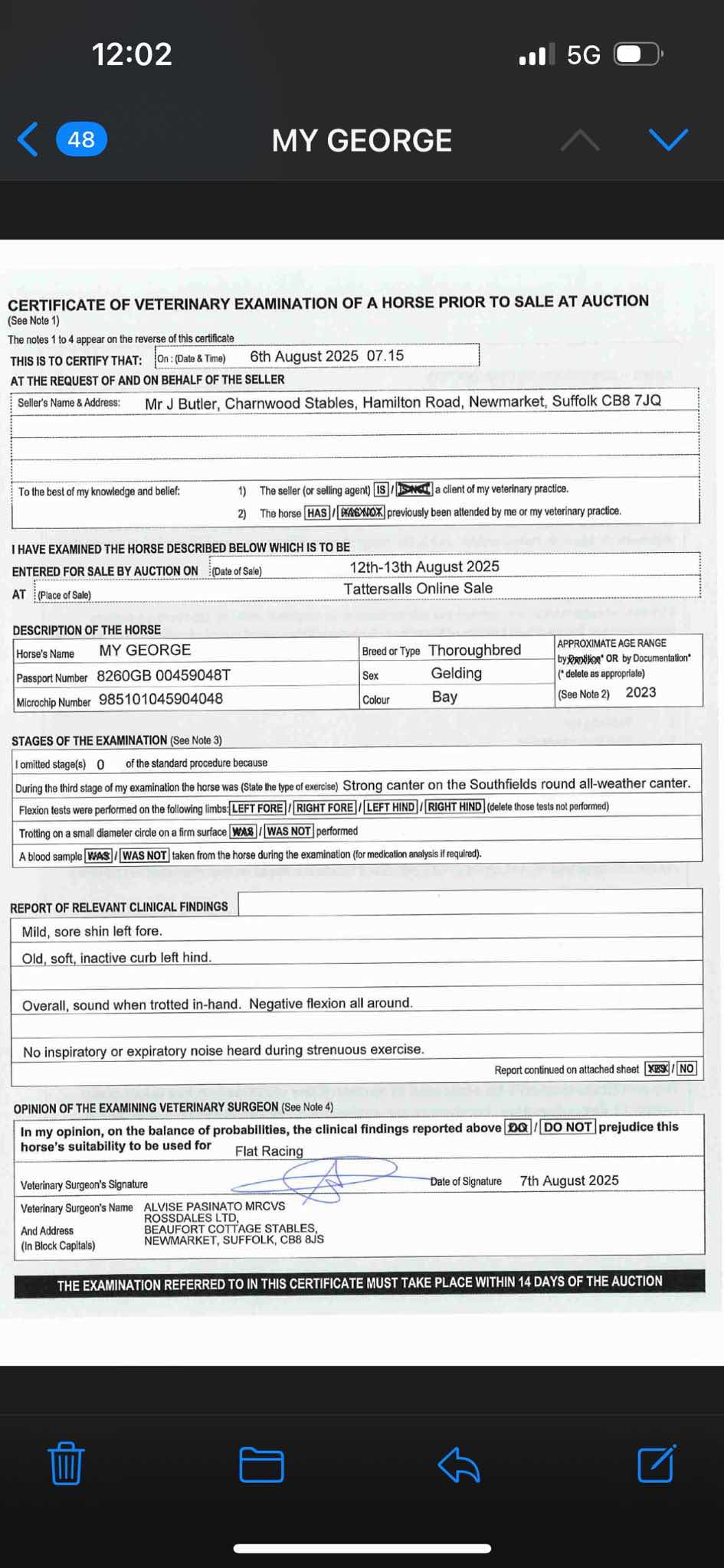 For time sensitive requests please call Tattersalls on +44(0)1638665931