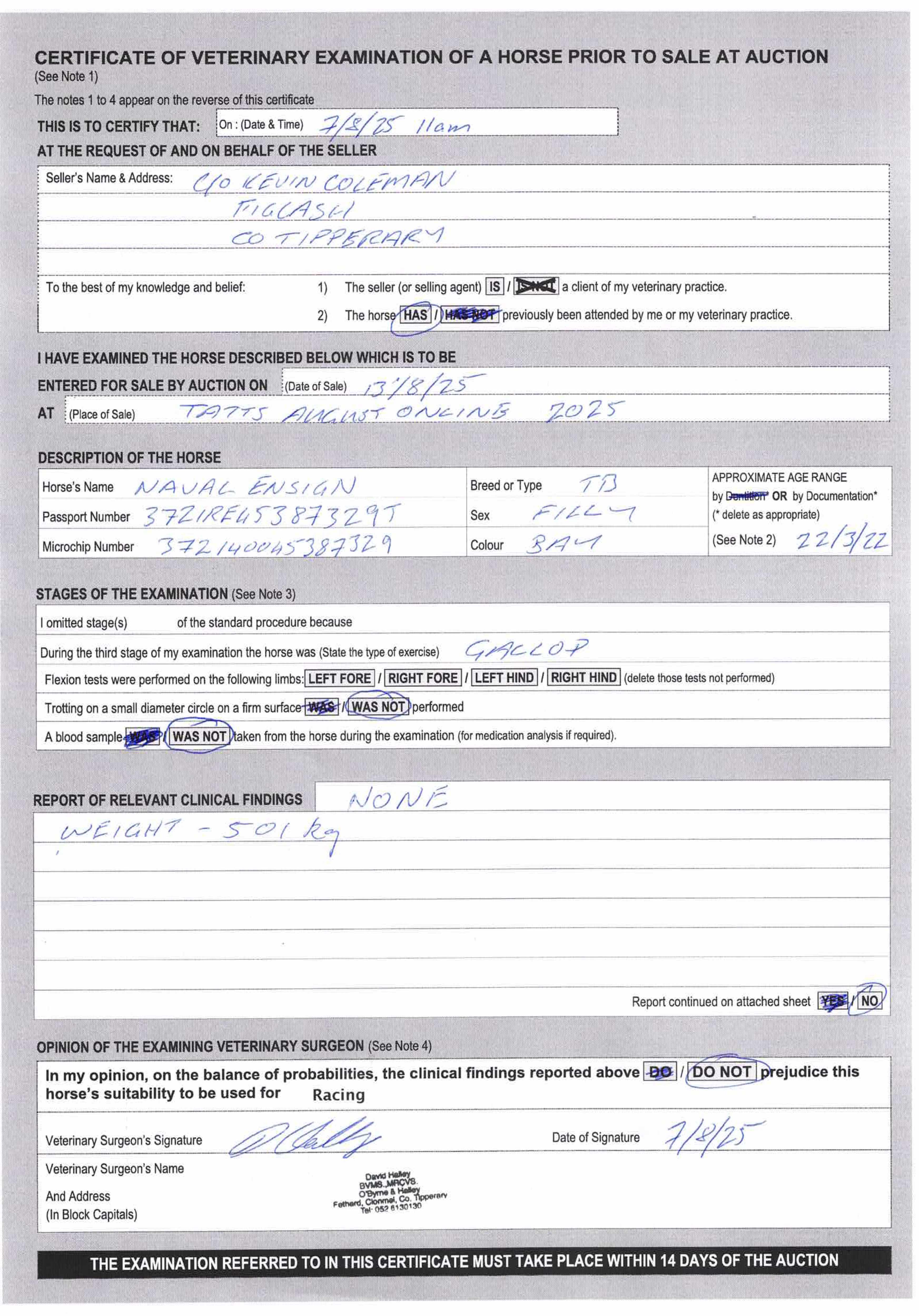For time sensitive requests please call Tattersalls on +44(0)1638665931