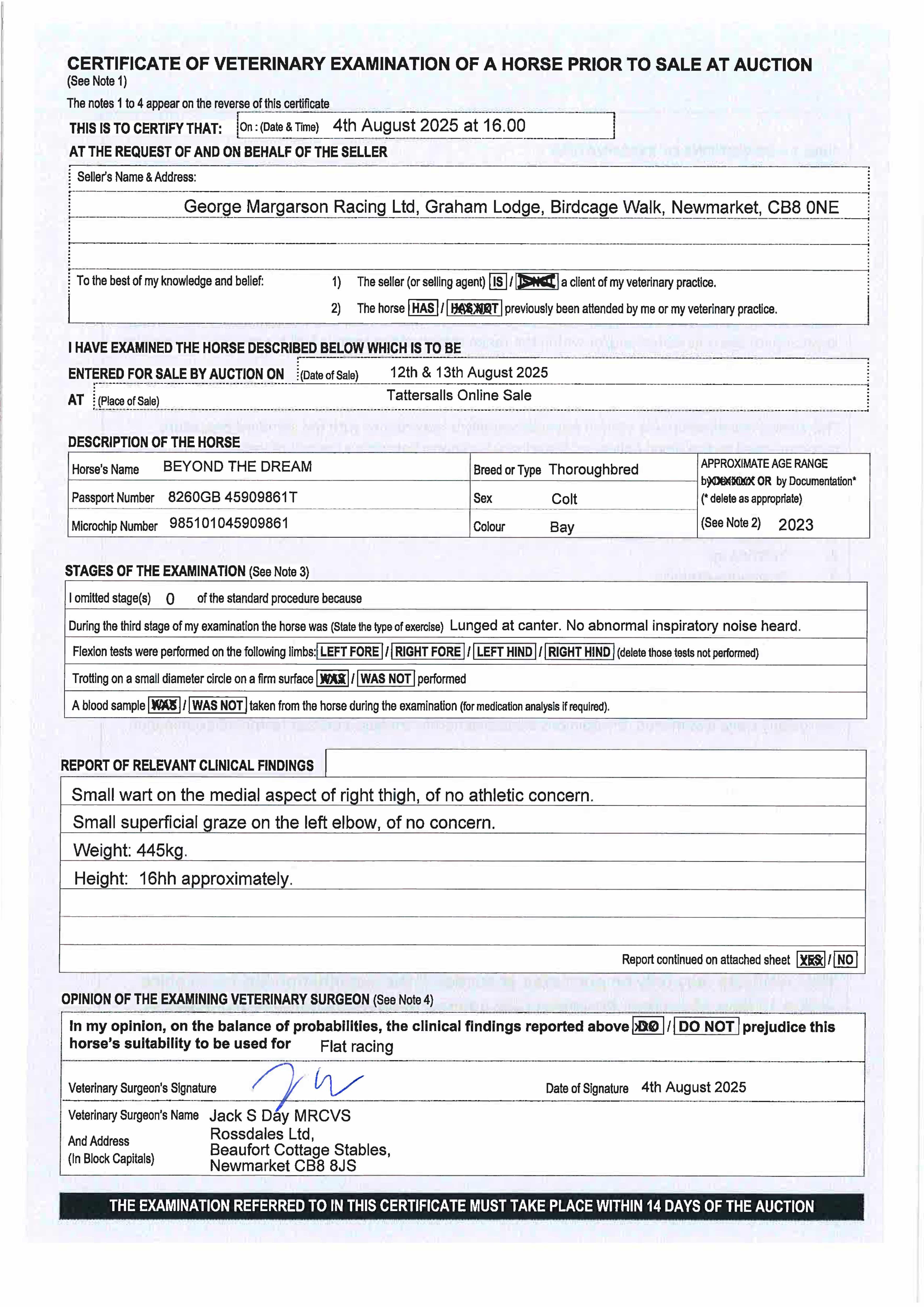 For time sensitive requests please call Tattersalls on +44(0)1638665931