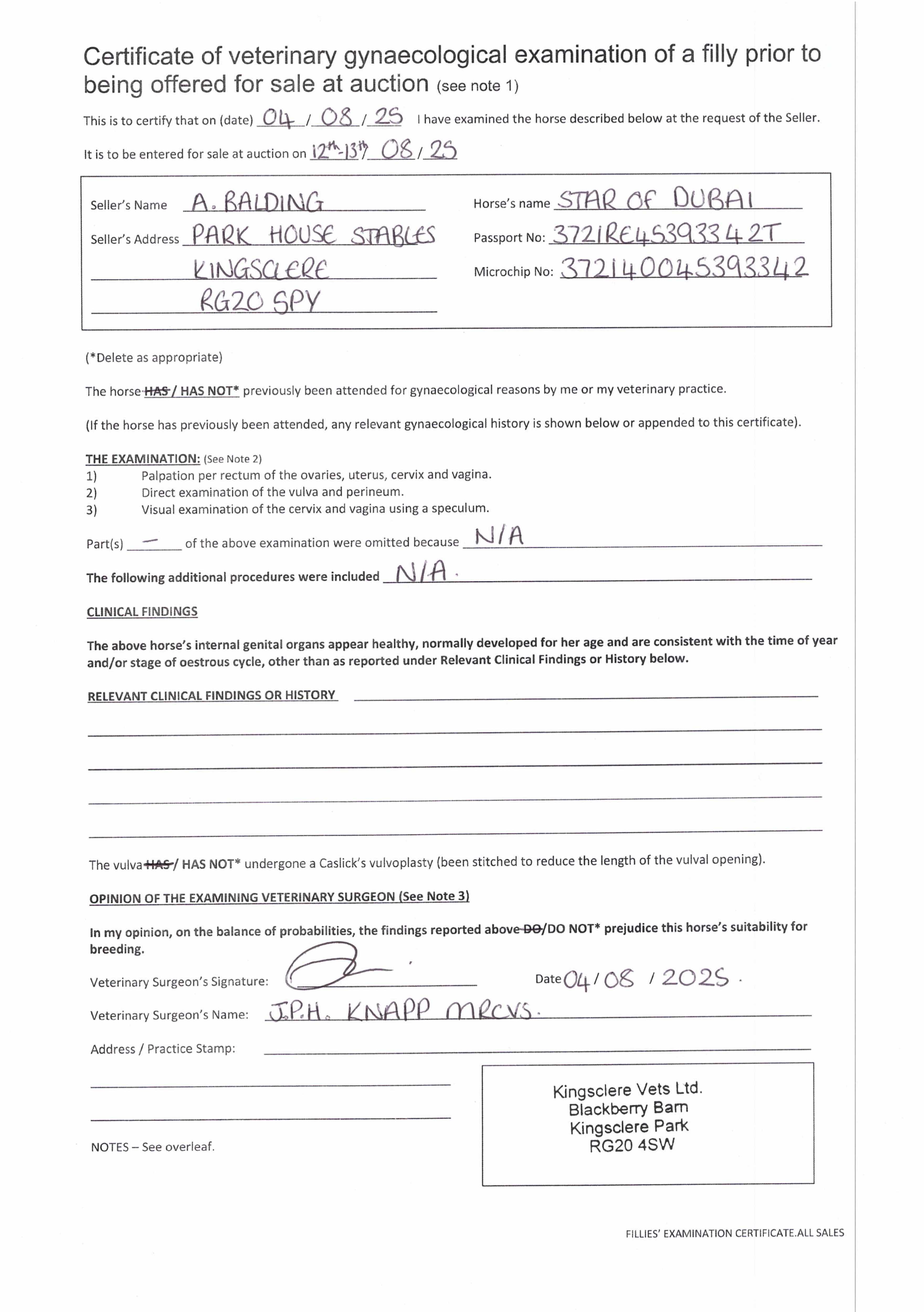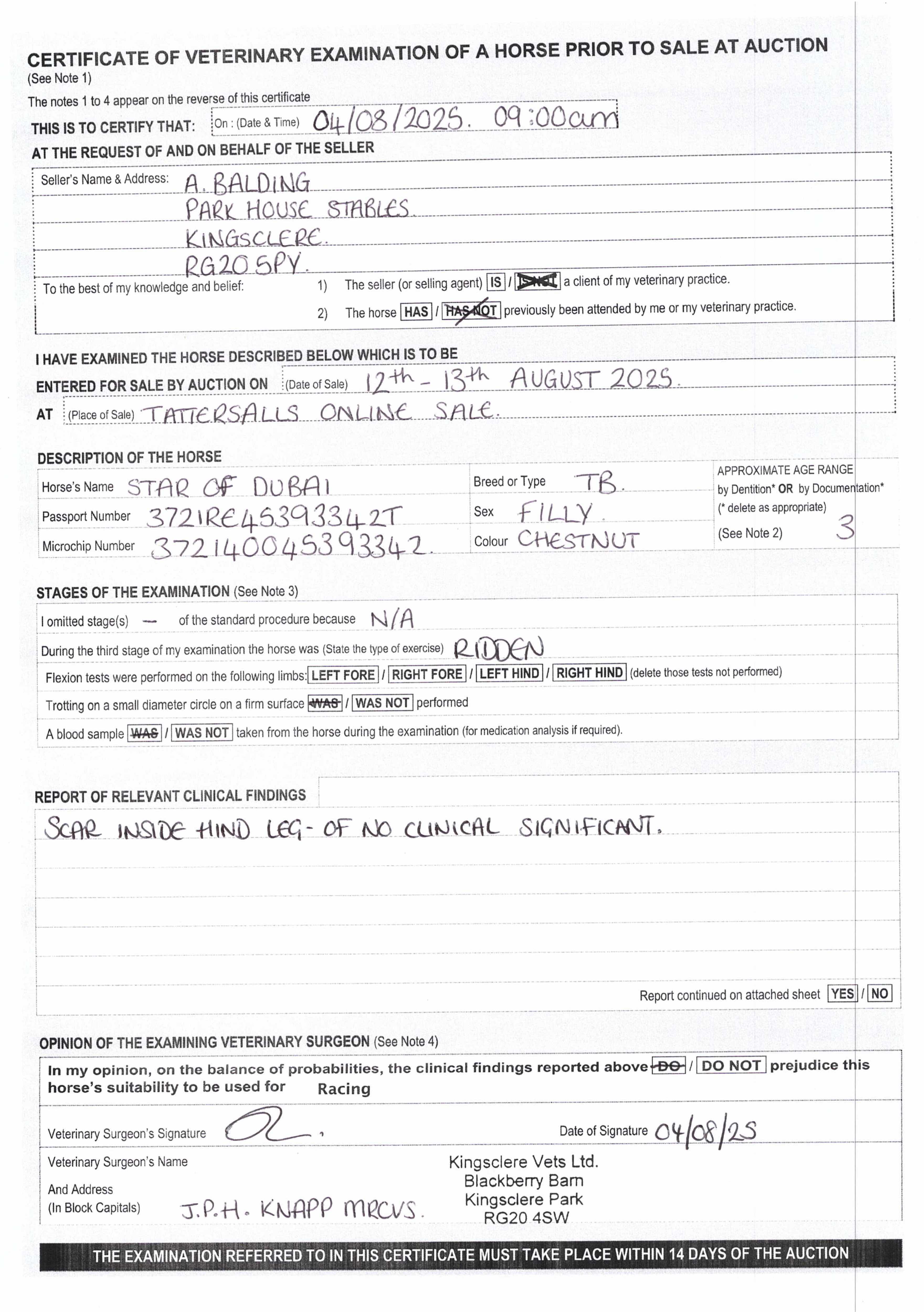 For time sensitive requests please call Tattersalls on +44(0)1638665931