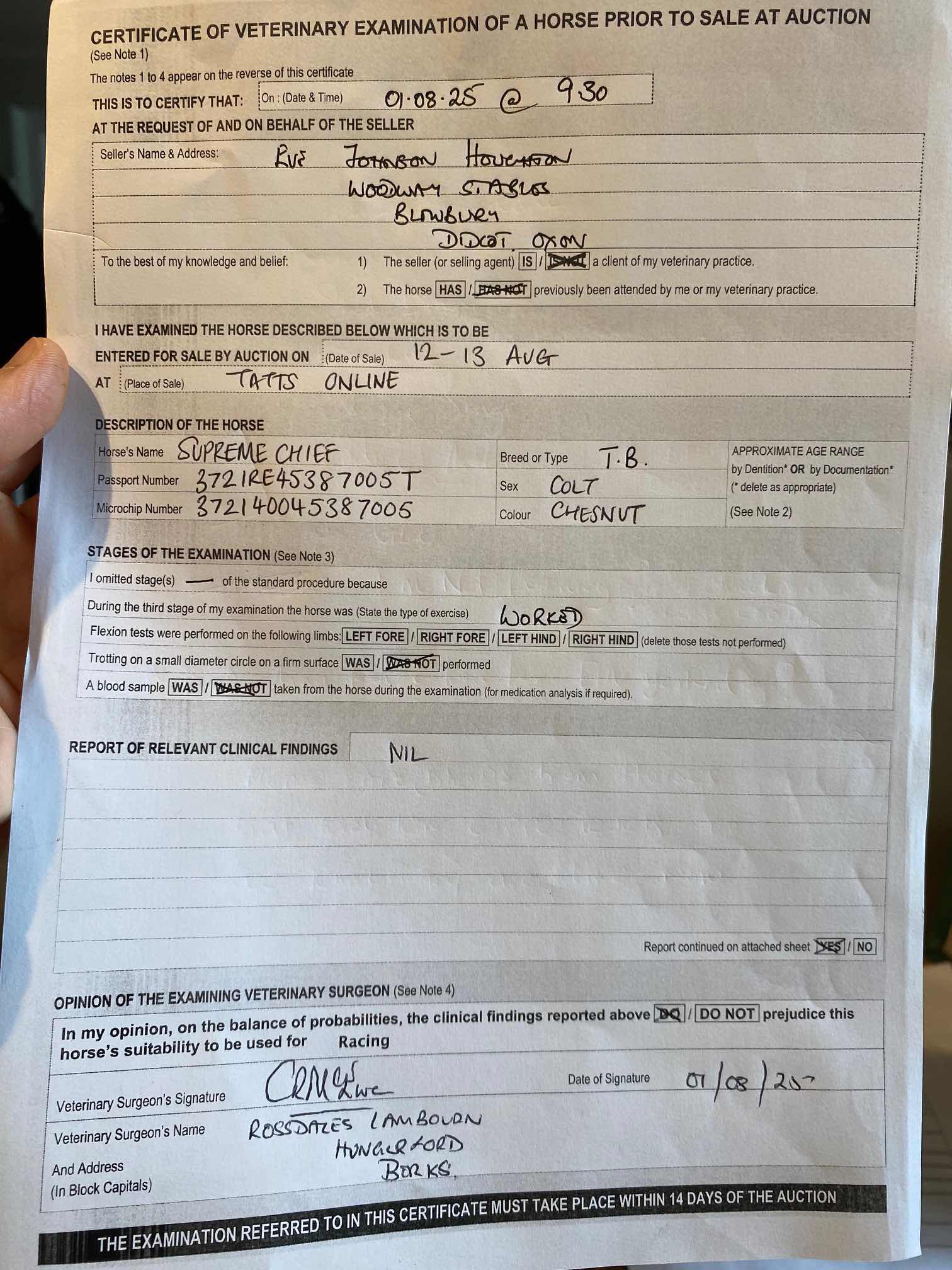 For time sensitive requests please call Tattersalls on +44(0)1638665931