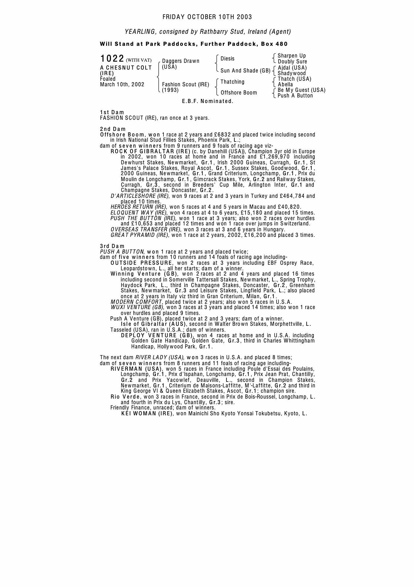 February Sale 2003 lot 174 Enchanting Wood (IRE) (F. by Woodborough (USA)), Rosyground Stud=>Vendor 3,400 gns