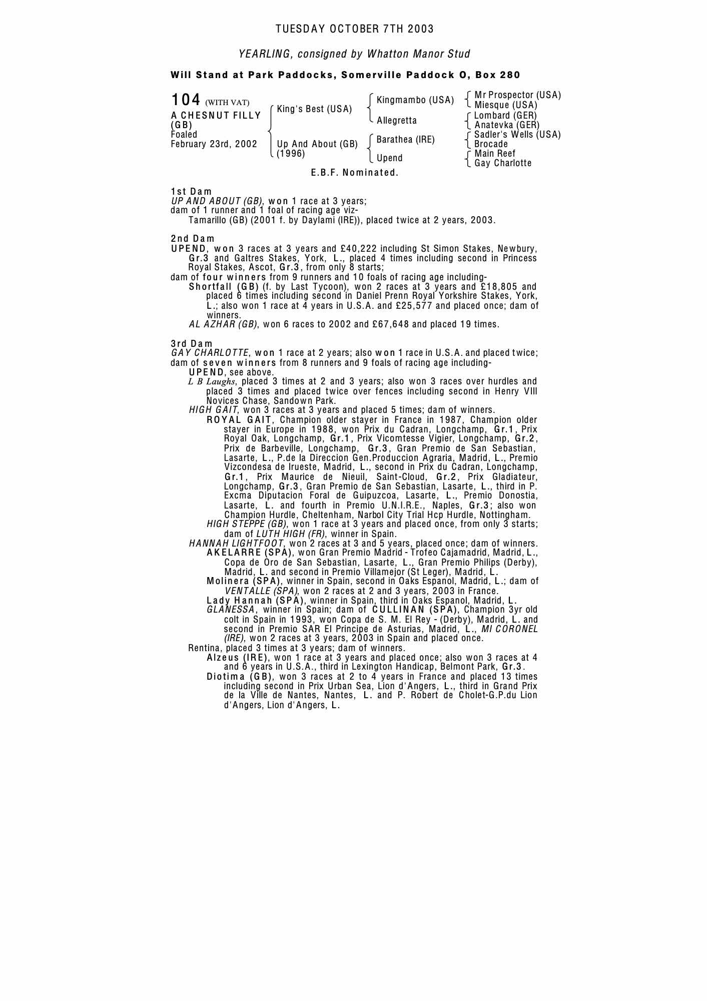 October Yearling Sale 2002 lot 151 F. by Daylami (IRE) 2001, Whatton Manor Stud=>Kern/Lillingston Association 40,000 gns
