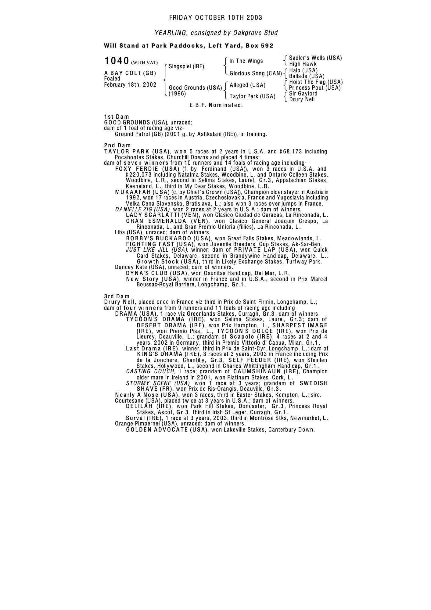 December Yearling Sale 2003 lot 242 C. 2002, Oakgrove Stud=>A Skiffington 50,000 gns