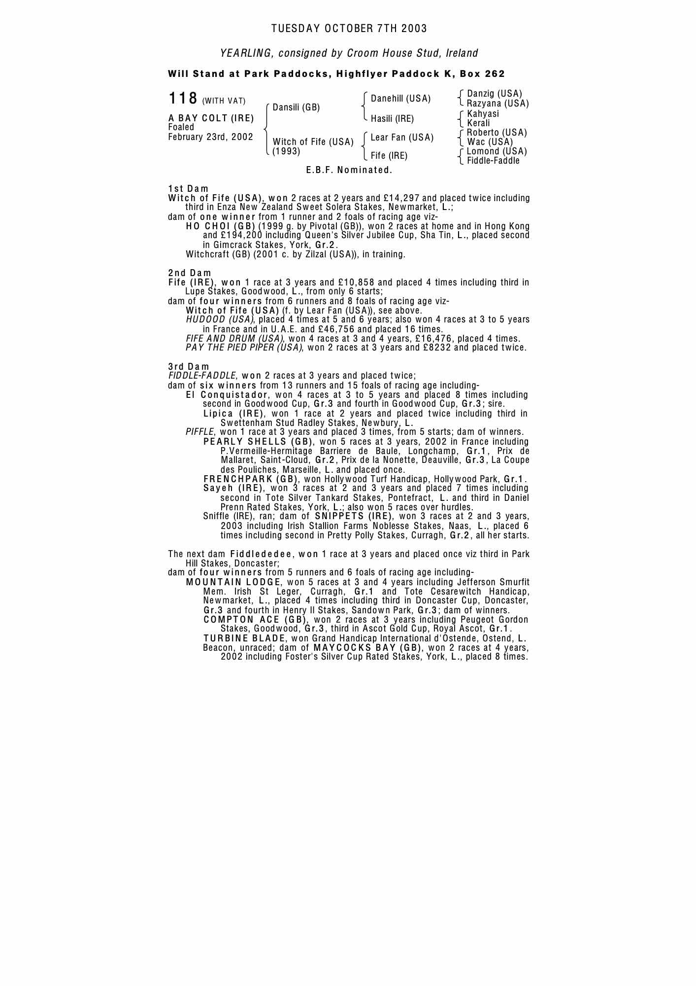 July Sale 2004 lot 143 Witchcraft (GB) (C. by Zilzal (USA)), Somerville Lodge Stables=>D Shaw 8,000 gns