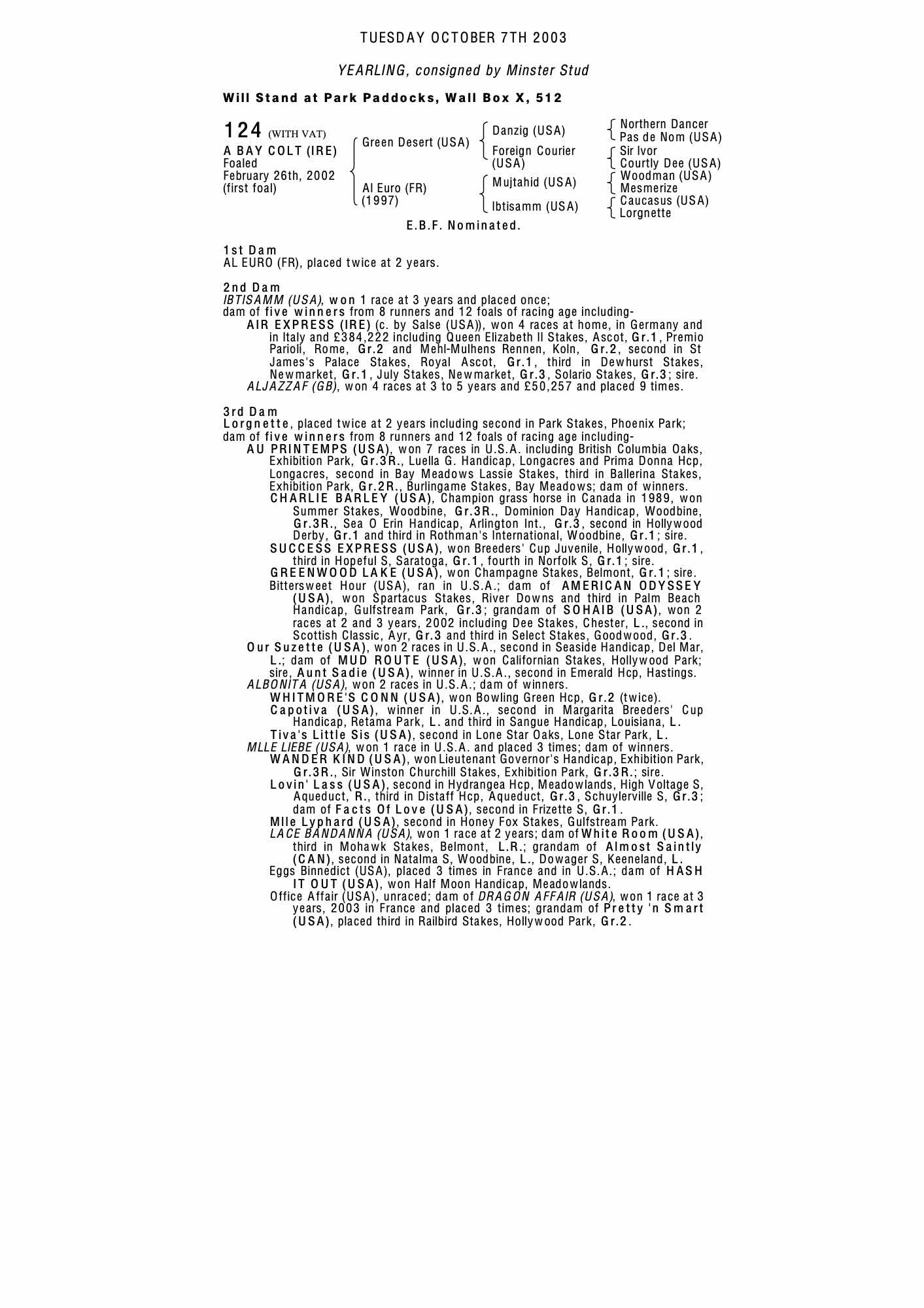 October Yearling Sale, Book 2 2004 lot 1158 C. by Alhaarth (IRE) 2003, Corduff Stud, Ireland=>MC Bloodstock 9,500 gns