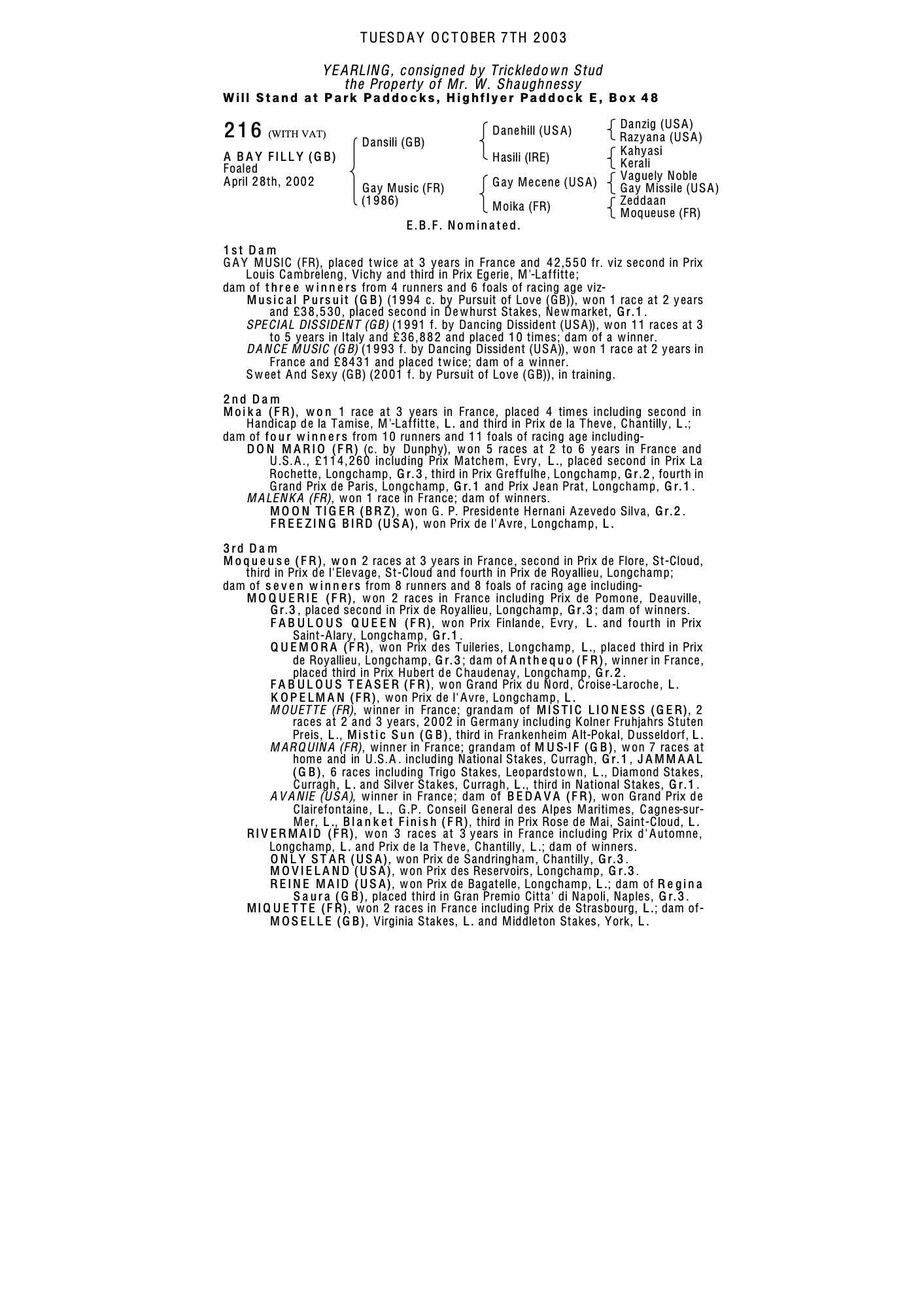July Sale 2002 lot 67 Street Poetry (GB) (F. by Mark of Esteem (IRE)), Darley=>JA Clayton 800 gns